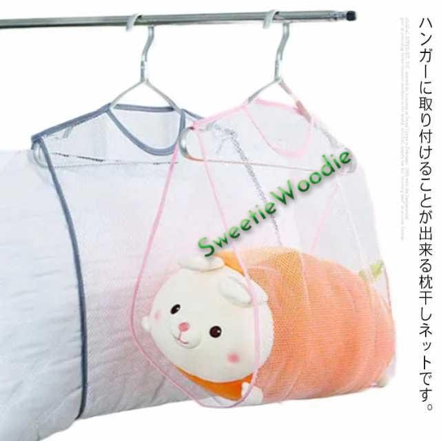 枕干しネット 2枚セット 物干しネット 取り付けタイプ メッシュ まくら クッション ぬいぐるみ 座布団 靴 洗濯 乾燥 ハンガー 吊り下げ式 省スペース 通気性 軽量 47×57cm 送料無料