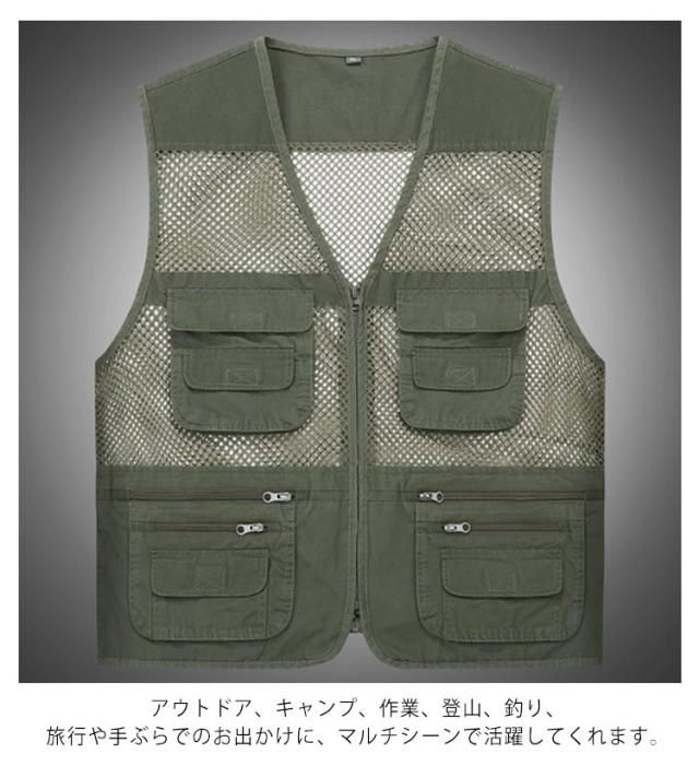 | これからの季節に重宝する多機能ベスト。 多めのポッケトがあり、収納力も抜群!財布、携帯電話など、ちよっとした外出時の持ち物は全て入るサイズなので、鞄を持たずに出かけられる。旅行時には、貴重品を入れておくと安心。 メッシュを使用し夏で快適に着用いただけます。 アウトドア、キャンプ、作業、登山、釣り、旅行や手ぶらでのお出かけに、マルチシーンで活躍してくれます。 | |