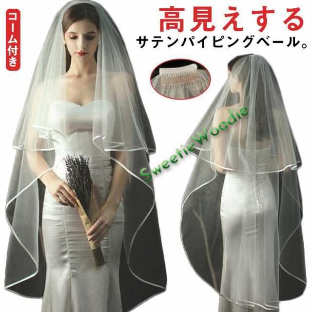 | 高見えするサテンパイピングベール。 フォーマル感漂う後ろ135cmのセミロング丈。 膝あたりの丈感、落ち着いたエレガントな印象。 シンプルでドレスの邪魔をせず、それでいて華やかさのあるベールです。 | |