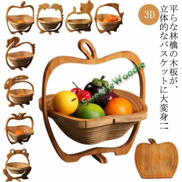 収納家具 りんごバスケット アップルバスケット テーブル バスケット 北欧 カゴ 3D 鍋敷き 動物柄 かご フルーツ 折り畳み 木製 可愛い 木 プレゼント 立体的 インテリア 収納 内祝 新築祝い 結婚 小物入れ