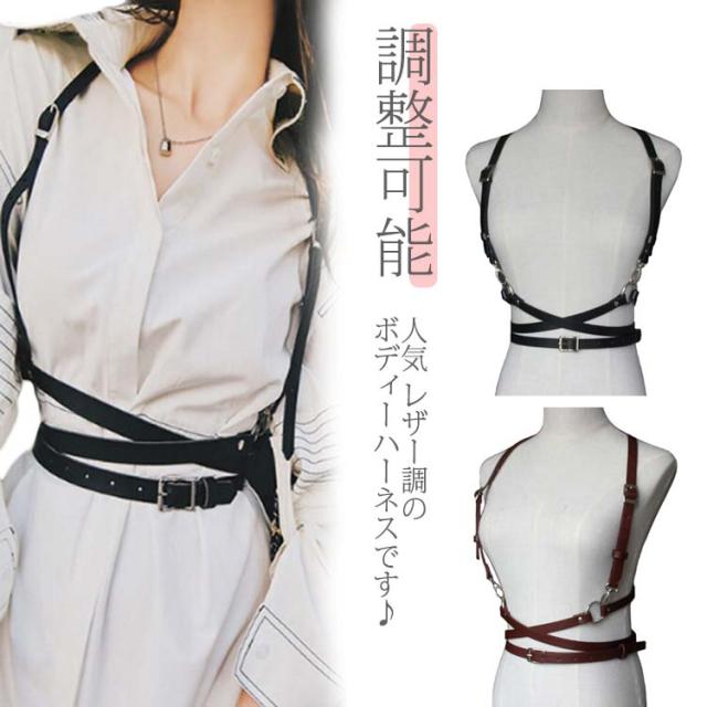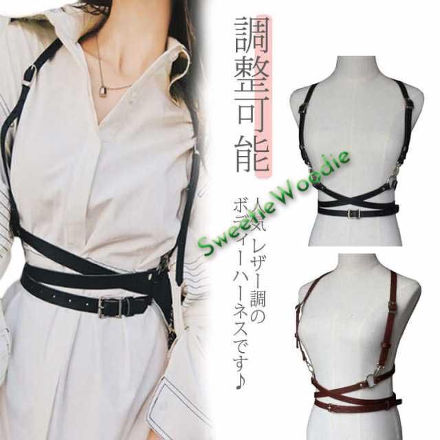 ハーネス ベルト サスペンダー ゴスロリ風 ボディーハーネス V系ボンテージ ハーネスベルト レザー 黒 ブラック 多重ベルト 重ね着スタイル チェーン バングル 細見え ベルト レディース 調整可能 韓国ファッション 送料無料