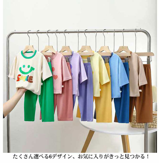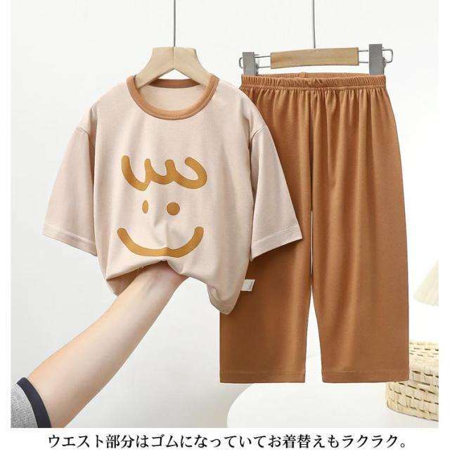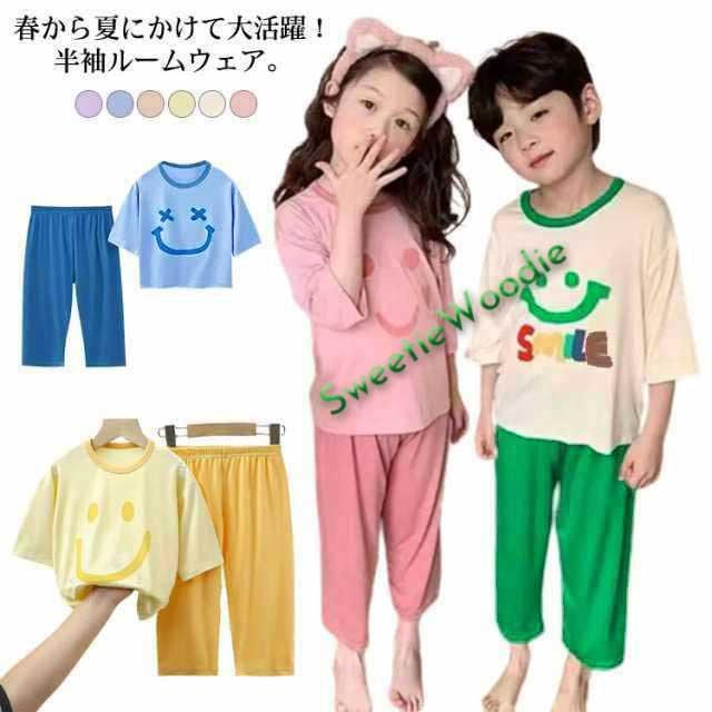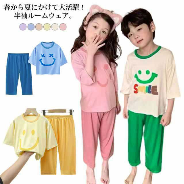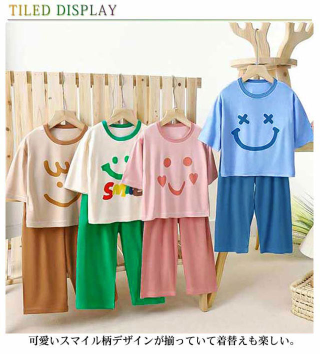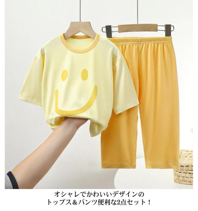 スマイル柄 上下セット 女の子 パジャマ 子供服 男の子 セットアップ ひんやり 110cm 接触冷感 半袖 ルームウェア 140cm かわいい 80cm 90cm 100cm 夏 120cm 130cm キッズ
