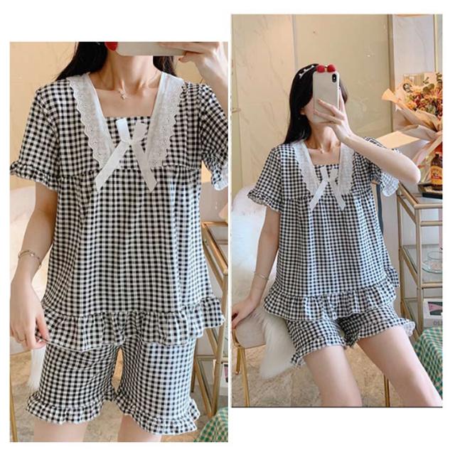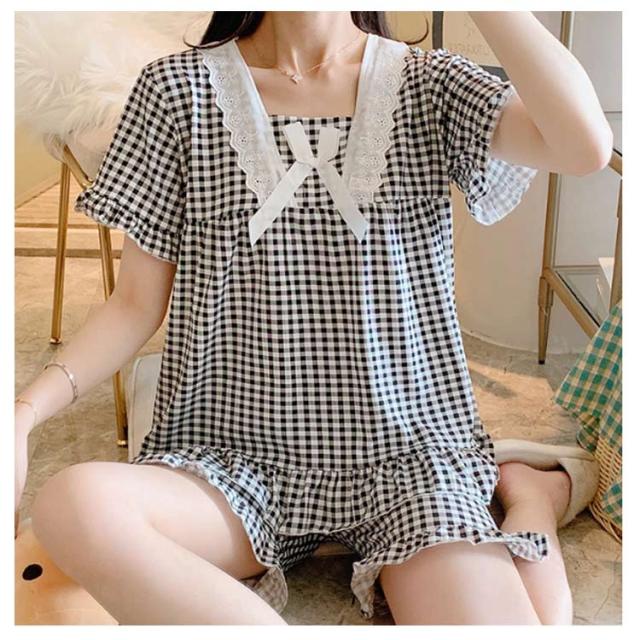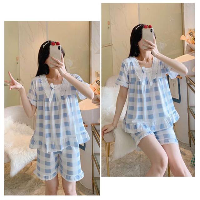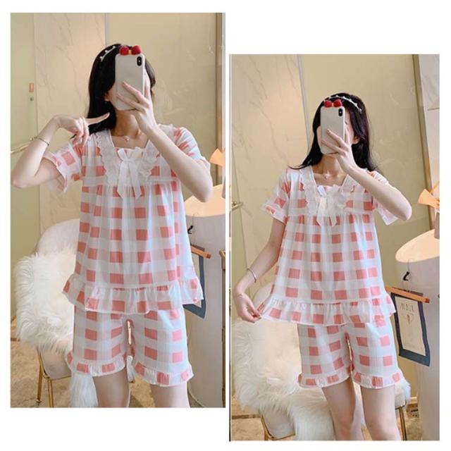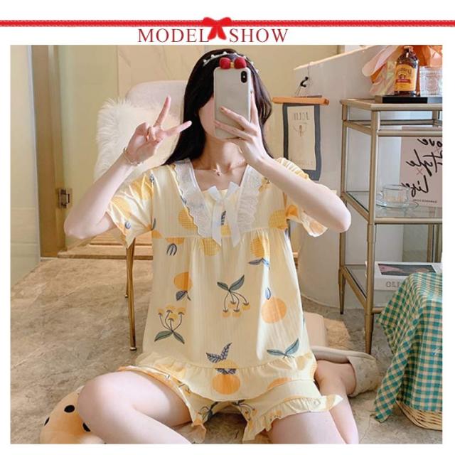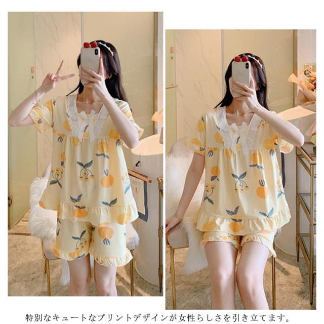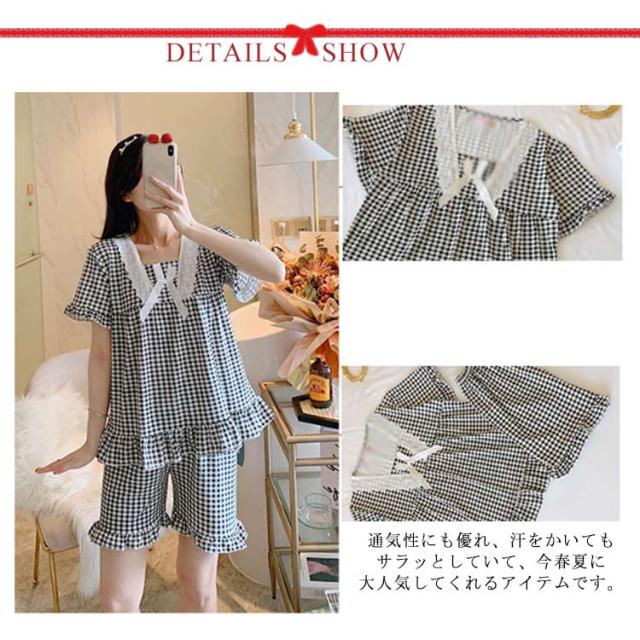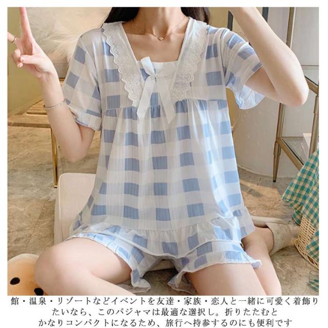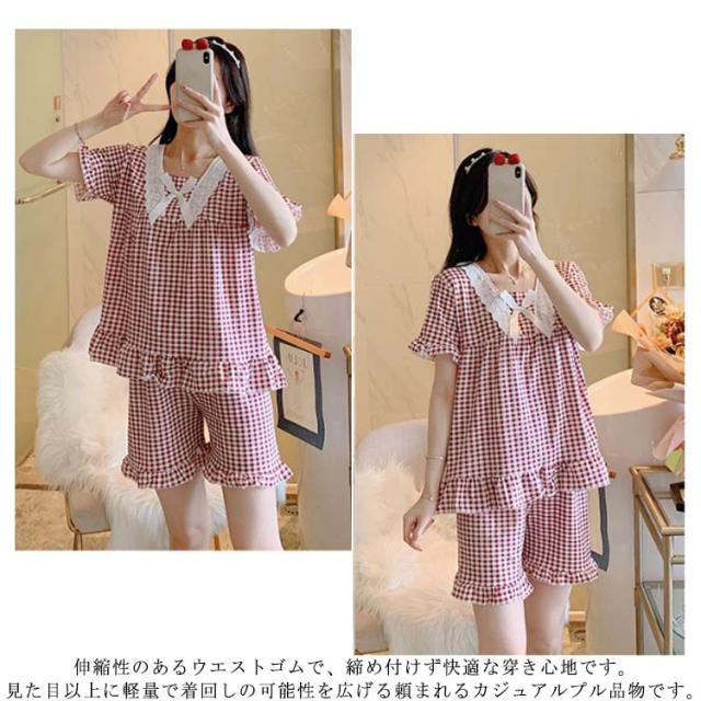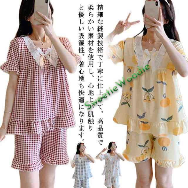 レディース パジャマ 半袖 ゆず柄 チェック柄 レース リボン 短パン 半ズボン 上下セット 薄手 涼しい 女性用 綿 ルームウエア 部屋着 寝巻き おうちコーデ 春 夏 ナイトウエア ゆったり 大きいサイズ 大人