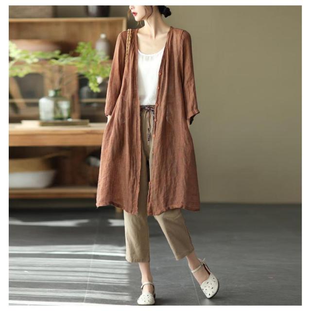 カーディガン レディース UVカット チャコール ロング 薄手 リネン ロング丈 羽織り 夏 カーディガン ガウン 涼しい コットン サマー 七分袖 秋 リネン混 トップス 紫外線対策 冷房対策 ゆったり 大きいサイズ 体型カバー おしゃれ ナチュラル 春 夏 シアー