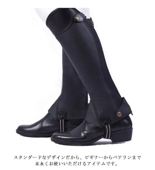 チャップス 乗馬 ゲートル ソフトレザー ハーフチャップス 乗馬用品 馬具 乗馬チャップス バックファスナー PUレザー 乗馬 黒 レギンス スパッツ 足 脚 プロテクター 男女兼用 レディース メンズ ジュニア 男性 女性 乗馬チャップス 脚絆 送料無料