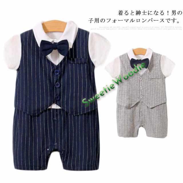 ベビーフォーマル ロンパース 男の子 新生児 洋装 カバーオール 半袖 ベビー服 蝶ネクタイ お喰い初め サロペット 赤ちゃん 夏服 結婚式 セレモニー お宮参り 出産祝い 送料無料