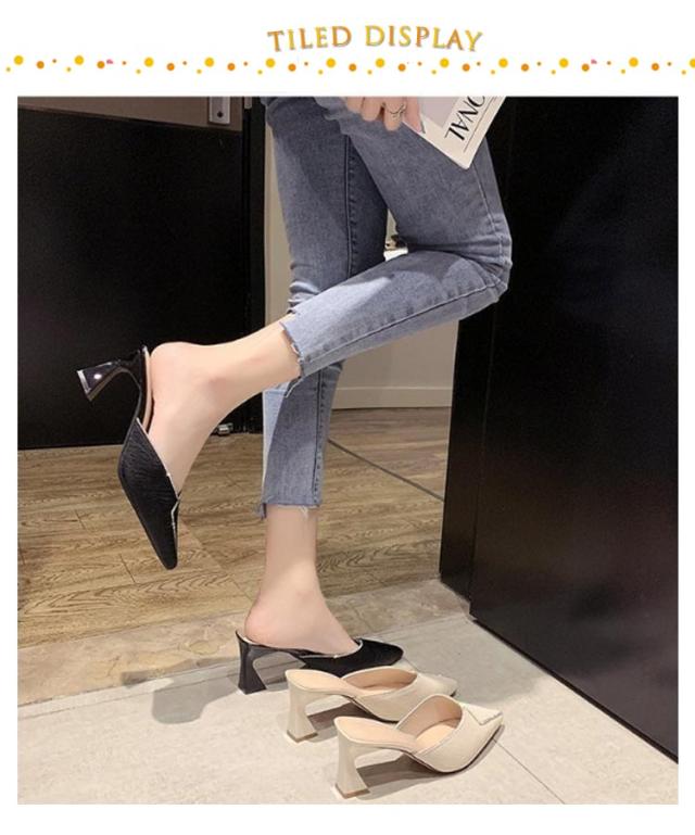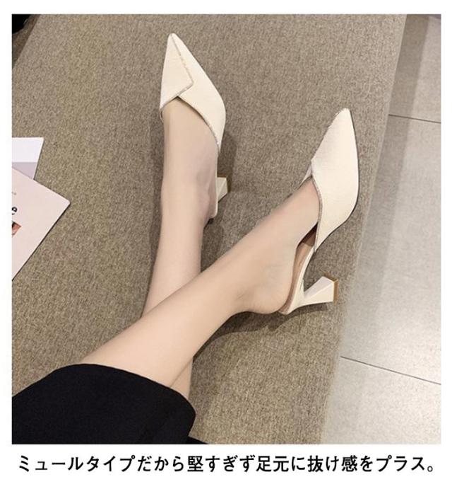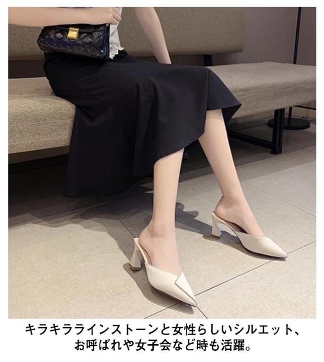 小さいサイズ 春夏 オフィス サンダル ハイヒール かかとなし ポインテッドトゥ パンプス ミュールサンダル 22-24.5cm シューズ バブーシュ 靴 きれいめ お出かけ お呼ばれ レディース
