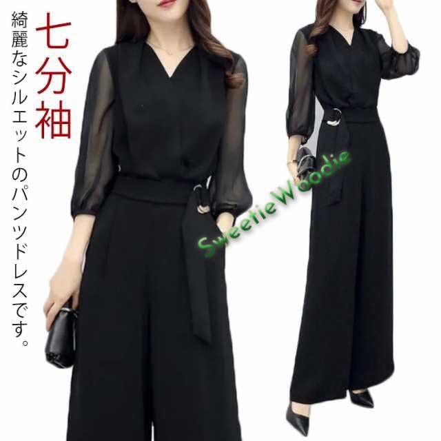入園式 ママスーツ ブラックフォーマル フェミニン 七分袖 レディース パンツドレス 入学式 おしゃれ 卒業式 卒園式 結婚式 20代 セレモニー スーツ パンツスーツ お呼ばれ 春 秋 オールインワン 大きいサイズ 夏 30代 40代 S M L XL パンツドレス