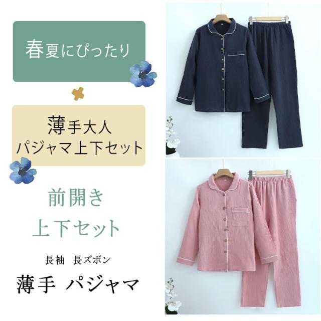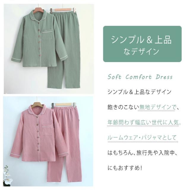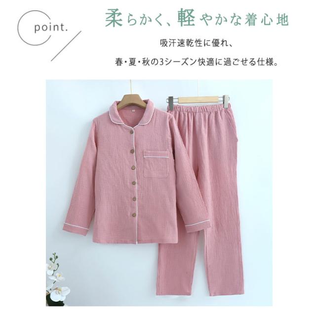 ルームウェア パジャマ レディース メンズ 上下セット 綿 ダブルガーゼ 長袖 ロングパンツ 前開き 薄手 吸汗速乾 春 夏 秋 入院パジャマ 無地 部屋着 ナイトウェア 寝巻き ふんわり 快適 母の日 父の日 ギフト