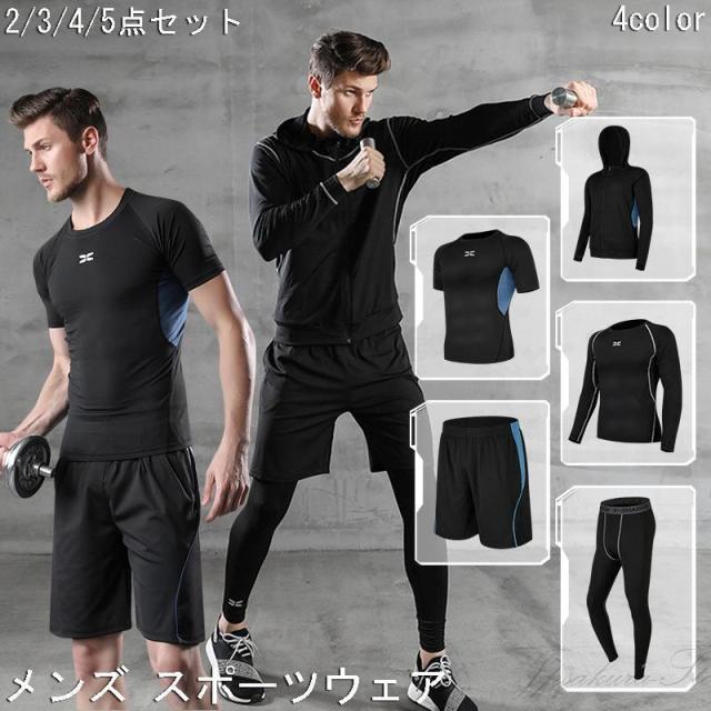 トレーニングウエア メンズ スポーツウェア ランニングウェア ウォーキング ヨガウェア 速乾 父の日セットアップ 春 秋 ジム 吸汗 ダイエット 夏 上下5点セット