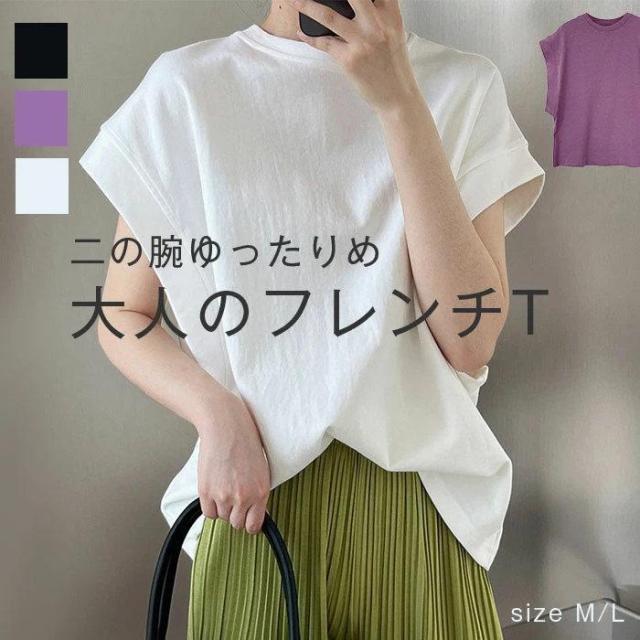 フレンチスリーブtシャツ 無地T クルーネック tシャツ フレンチスリーブ レディーストップス 夏 カジュアル 二の腕カバー ノースリーブ シンプル 大きいサイズ