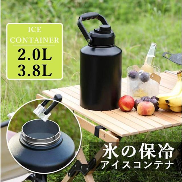 アイスコンテナ ジャグ ウォータージャグ 真空 ボトル 2.0L 3.8L 氷 持ち運び 保冷 50°以内HOTも対応 ステンレス BBQ キャンプ 屋外 花見 氷入れ 水筒 タンク 大容量