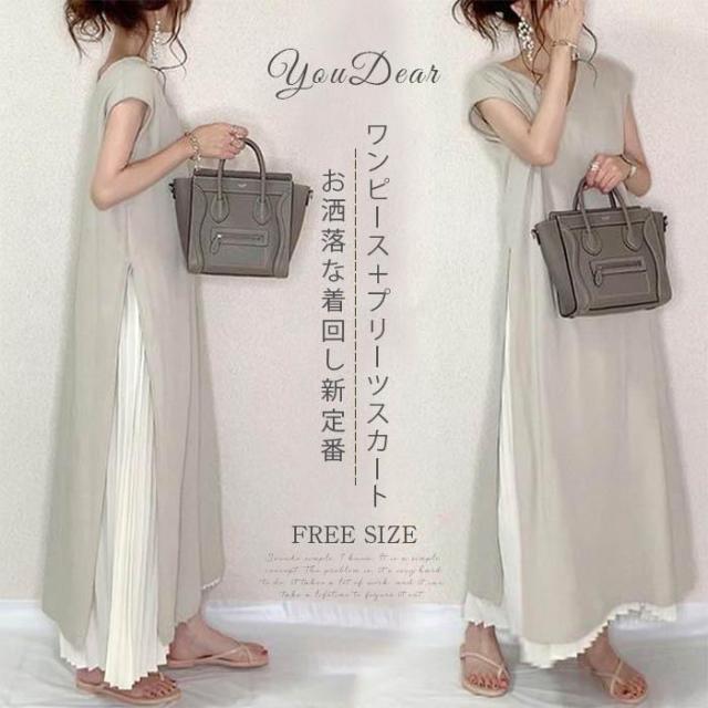 ワンピース レディース マキシワンピース セットアップ 2点セット プリーツスカート ロングワンピース 着回し 着痩せ きれいめ 体型カバー 着心地