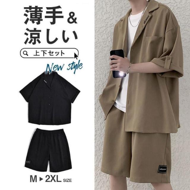 セットアップ メンズ 夏 半袖 上下セット テーラードジャケット サマー カジュアル 薄手おしゃれ 涼しい シャツ ホームウエア トップス アウター大きいサイズ