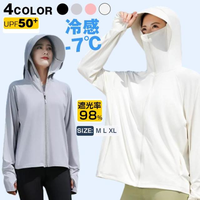UV パーカー 冷感 -7℃ レディース 長袖 ラッシュガード UVカット アウター 通気口 指穴 つば 日焼け防止 服 大きいサイズ トップス 体型カバー 薄手 吸湿 速乾 紫外線対策