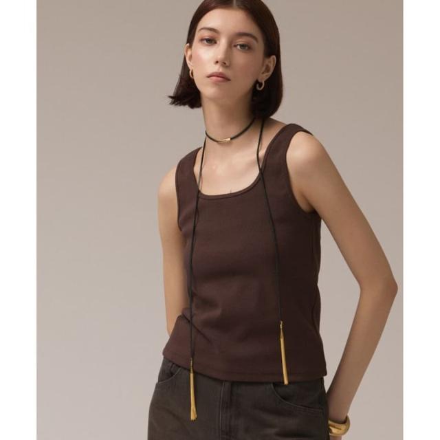 レザー紐とチェーンタッセルを組み合わせたチョーカー。