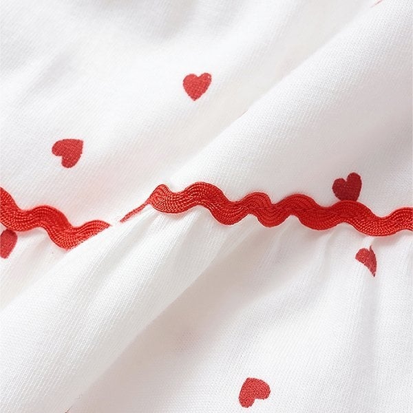 ハートをちりばめた女の子らしさあふれるティアードワンピースです。