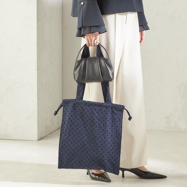 ドロスト仕様になっており巾着バッグとしても使用できるトートバッグ。