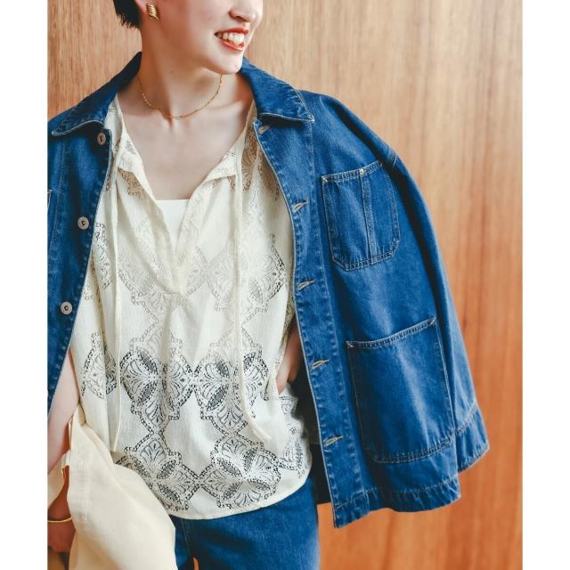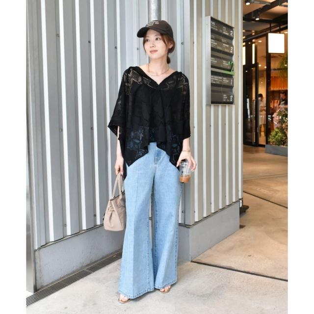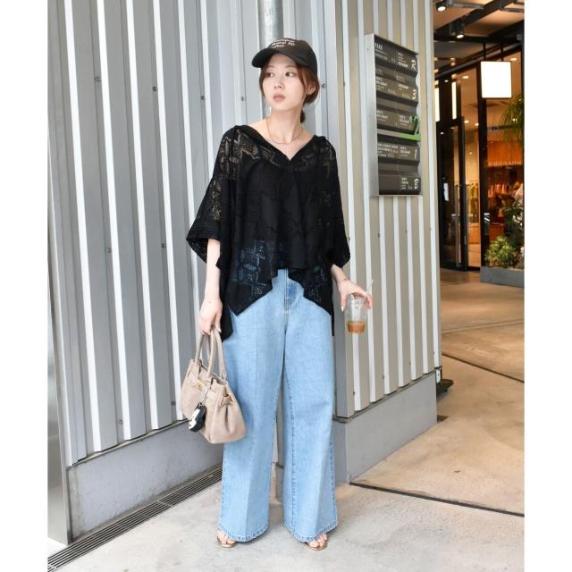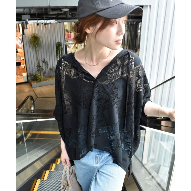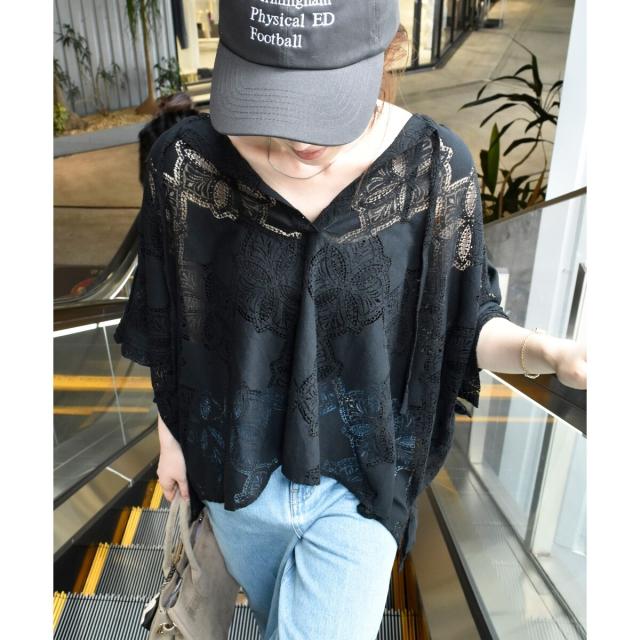 ポンチョのようなたっぷりとしたシルエットで大人も着やすいレースブラウス。