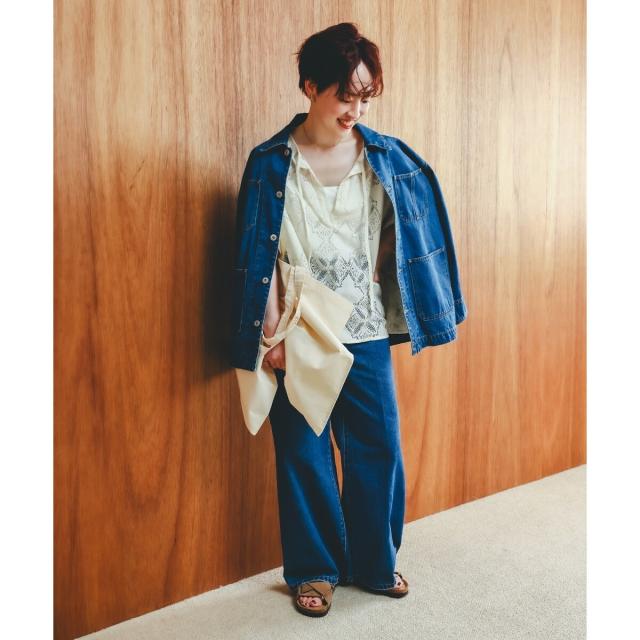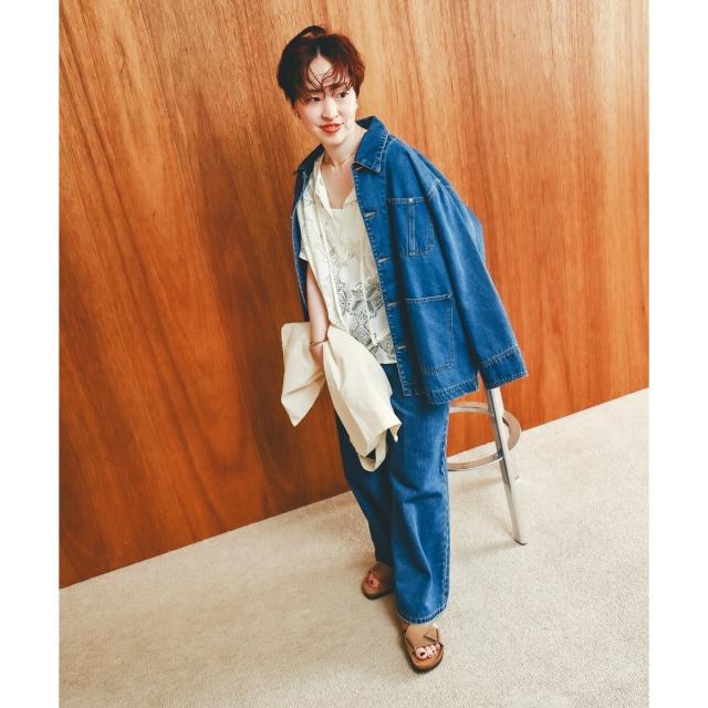 暑い時期でも涼しく着られるサイズ感だが、二の腕がしっかり隠れる袖丈でいいとこどり。