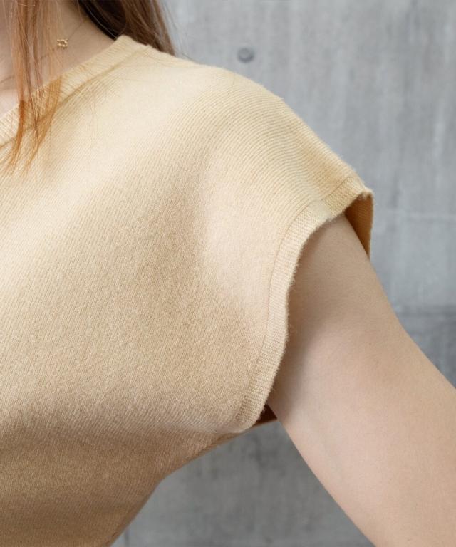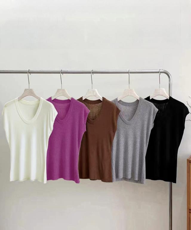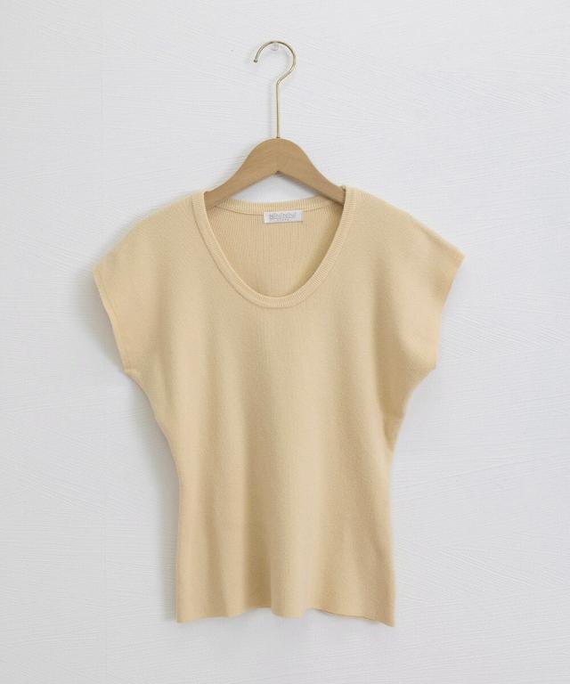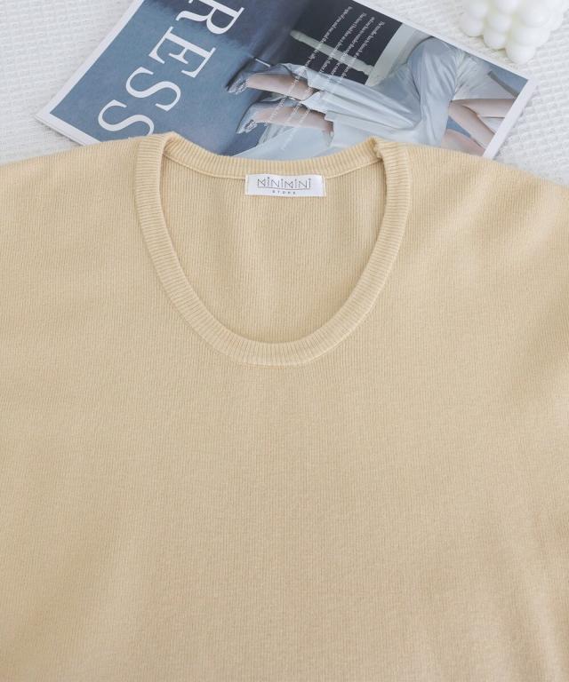 シンプルなデザインで、着回しやすいUネックニットTシャツ。