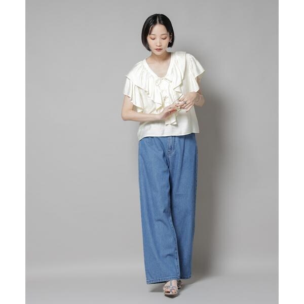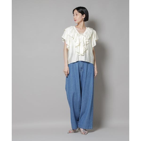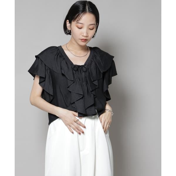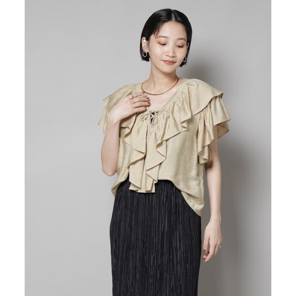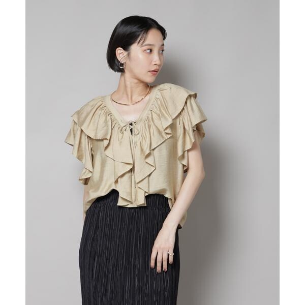 ナノユニバース(NANO universe)/フリルディティールフロントレースアップブラウス