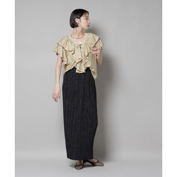 たっぷり入ったギャザーやフリル、フロントのレースアップのフェミニン要素を集めた女性らしいデザインのブラウス。きれいめなボトムスに合うのはもちろん、デニムやオーバーオール、サロペットなどのカジュアルアイテムとのスタイリングがおすすめです。