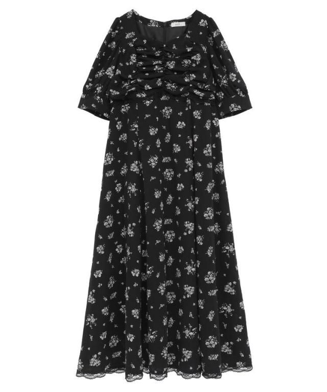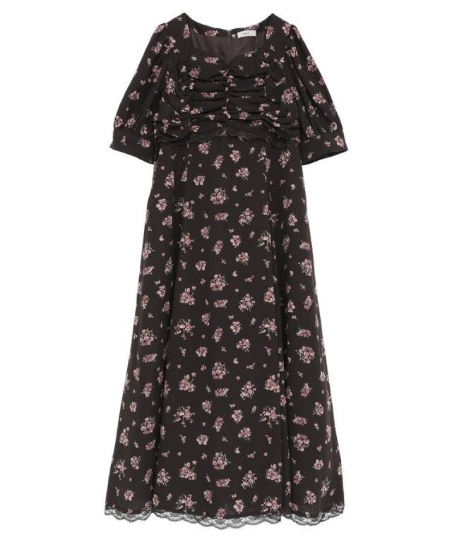 レトロ感漂うフローラルプリントがフェミニンなワンピース。胸元のふっくらとしたギャザーやウエストと裾にあしらった繊細なレースがロマンティックなムードを盛り上げます。高めウエスト切り替えで脚長のスタイルアップ効果も魅力的なデザイン。パンプスやミニバッグを合わせてとことんガーリーに合わせたコーディネートもおすすめです。