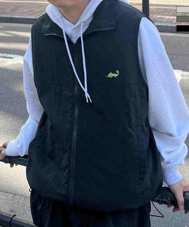 イルズ(ILLS)/ILL’S ワンポイント刺繍 ドロスト付き フルジップナイロンベスト