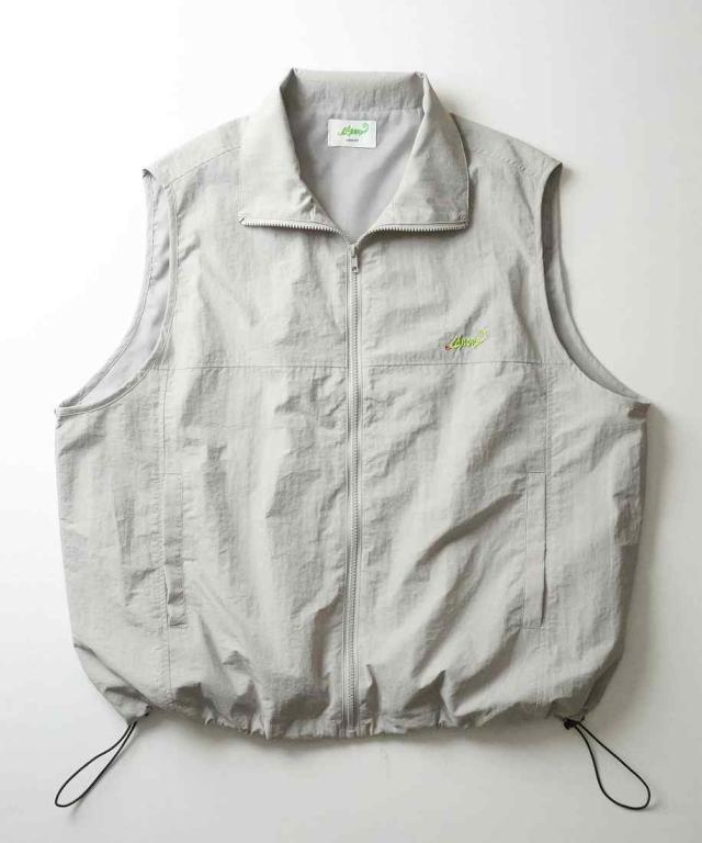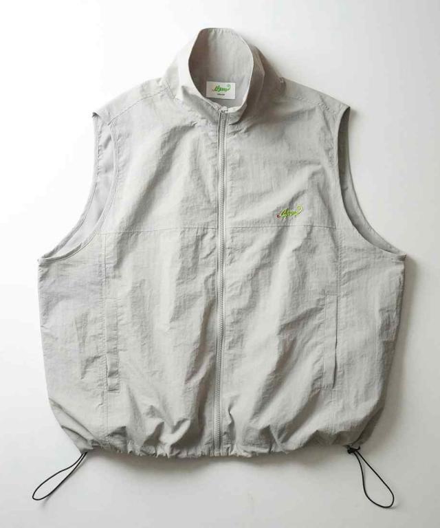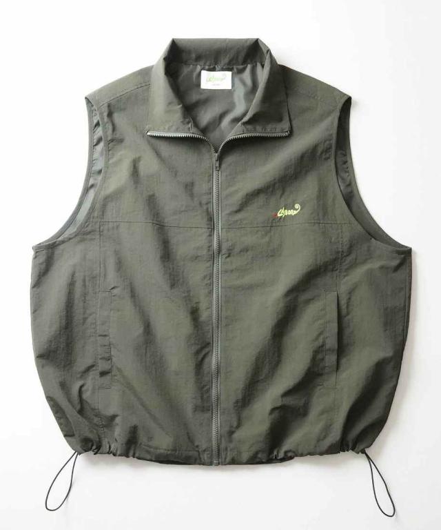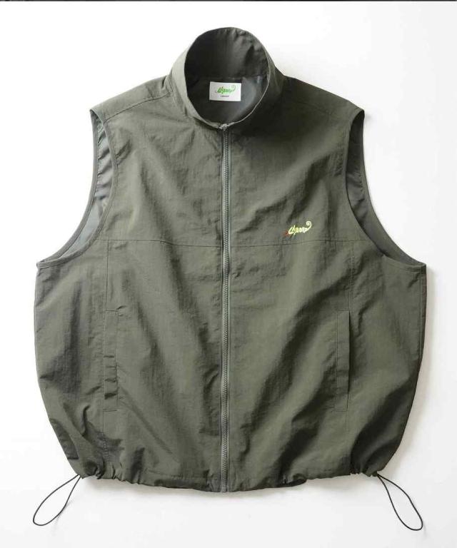 ILL’S ワンポイント刺繍 ドロスト付き フルジップナイロンベスト