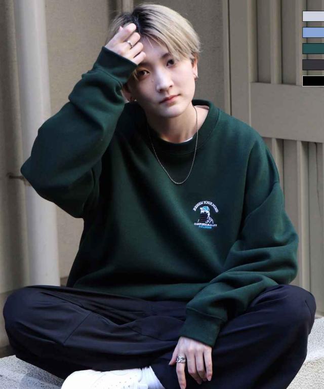 ILL’S ヒゲオジ刺繍A ワンポイント刺繍ロゴプルオーバースウェット
