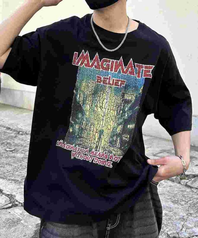 バンドTを彷彿とさせるヴィンテージライクなプリントTシャツ。
