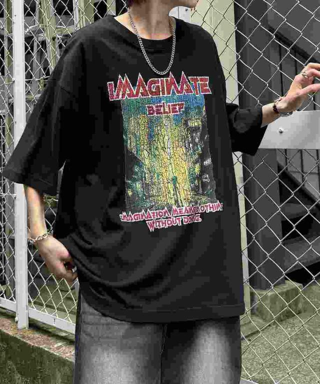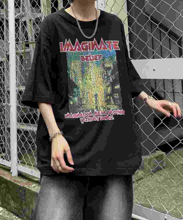 ILL’S ロックプリント レトロ ビッグシルエット半袖バンドTシャツ