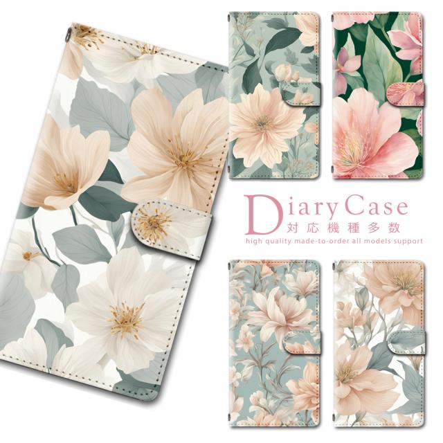 全機種対応 スマホケース 手帳型 ケース iPhone17Pro iPhoneAir iPhone17 ProMax iPhone16e iPhone16 16pro iphone15 se googlepixel7a pixel8a Galaxy s24 a53 AQUOS wish4 sense8 Sense7 xperia 10 vi iv v 花柄 花 フラワー イラスト 水彩 pass