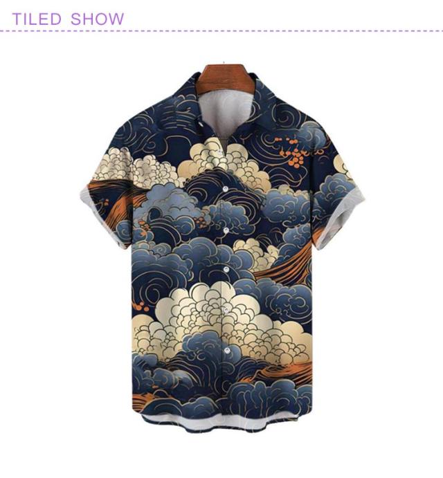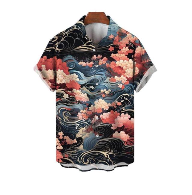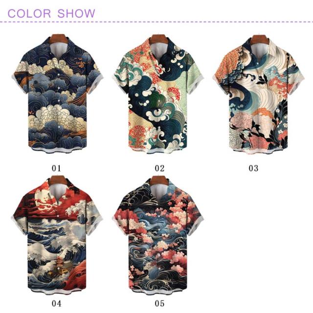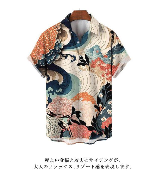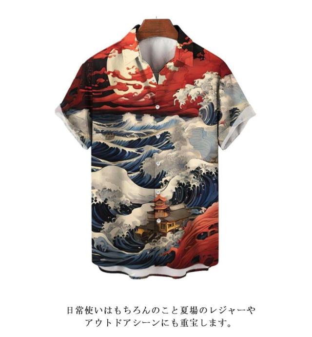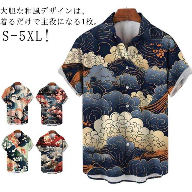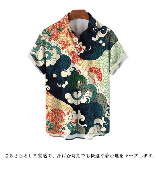 レトロ 波柄 和柄 薄手 ストリート 夏 リゾート カジュアルシャツ 大人 和風 海柄 総柄 半袖 総柄シャツ アロハシャツ 男性 柄シャツ 大きいサイズ 海波柄 夏服 シャツ 半袖シャツ カジュアル メンズ ビーチ アロハシャツ 川 海辺 旅行 お祭り 花火大会 30代 40代
