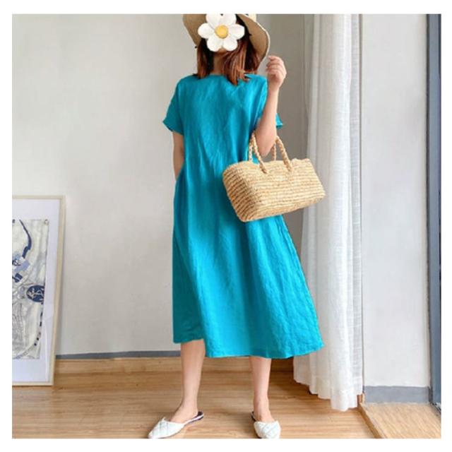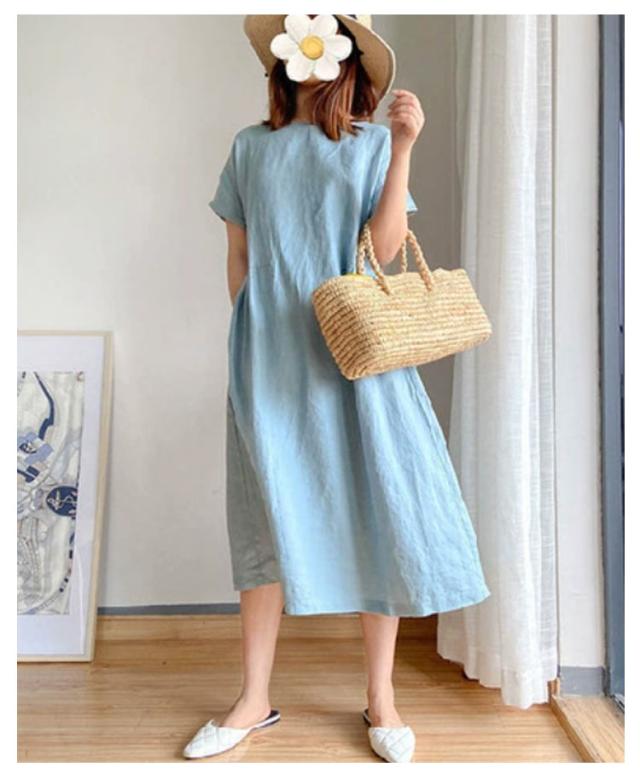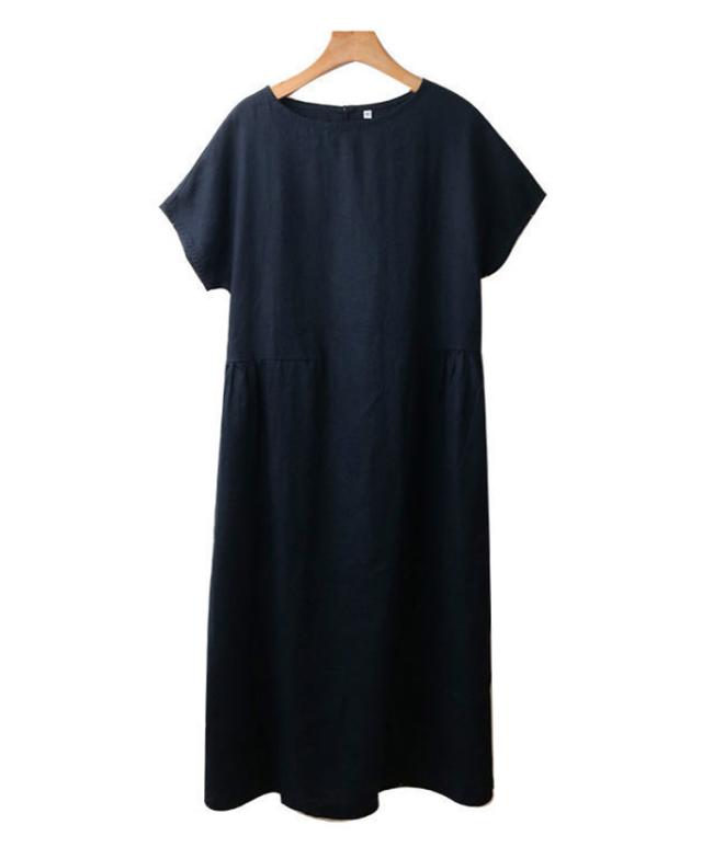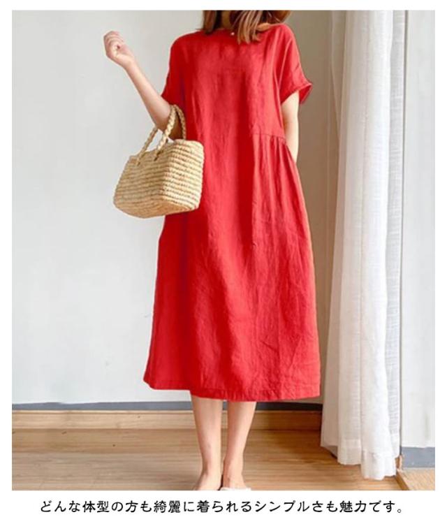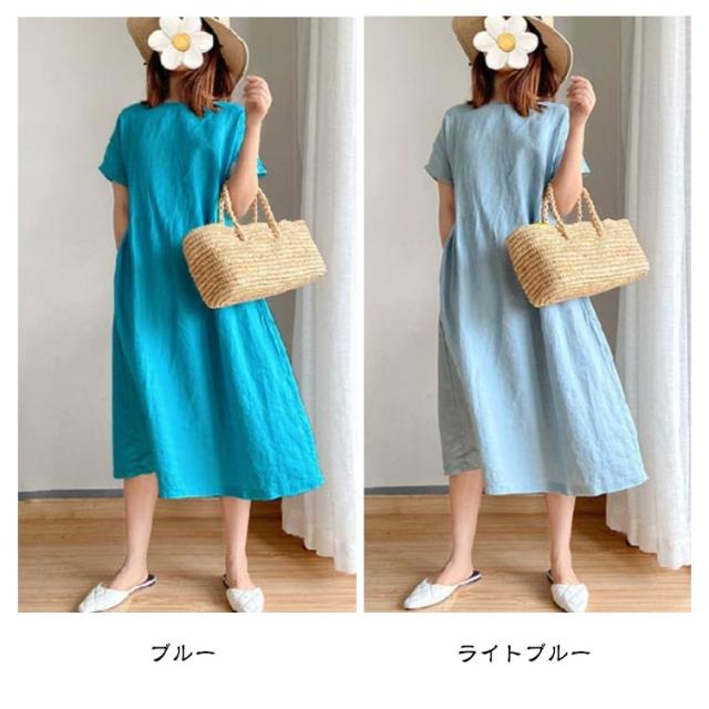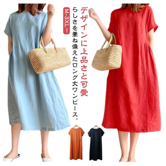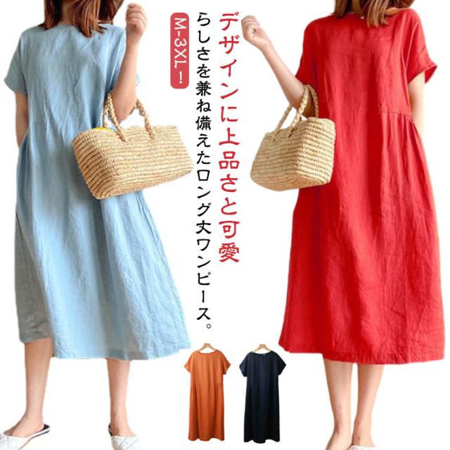 ワンピース 半袖 夏 ロングワンピース レディース ナチュラル 夏ワンピース きれいめ マキシ ロング丈 ワンピ 薄手 春 夏 ラウンドネック ゆったり Aライン 体型カバー 着?せ 細見え 大きいサイズ カジュアル おしゃれ マキシワンピース 無地 シンプル 可愛い 送料無料
