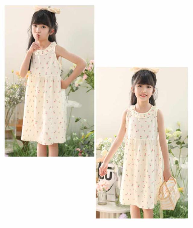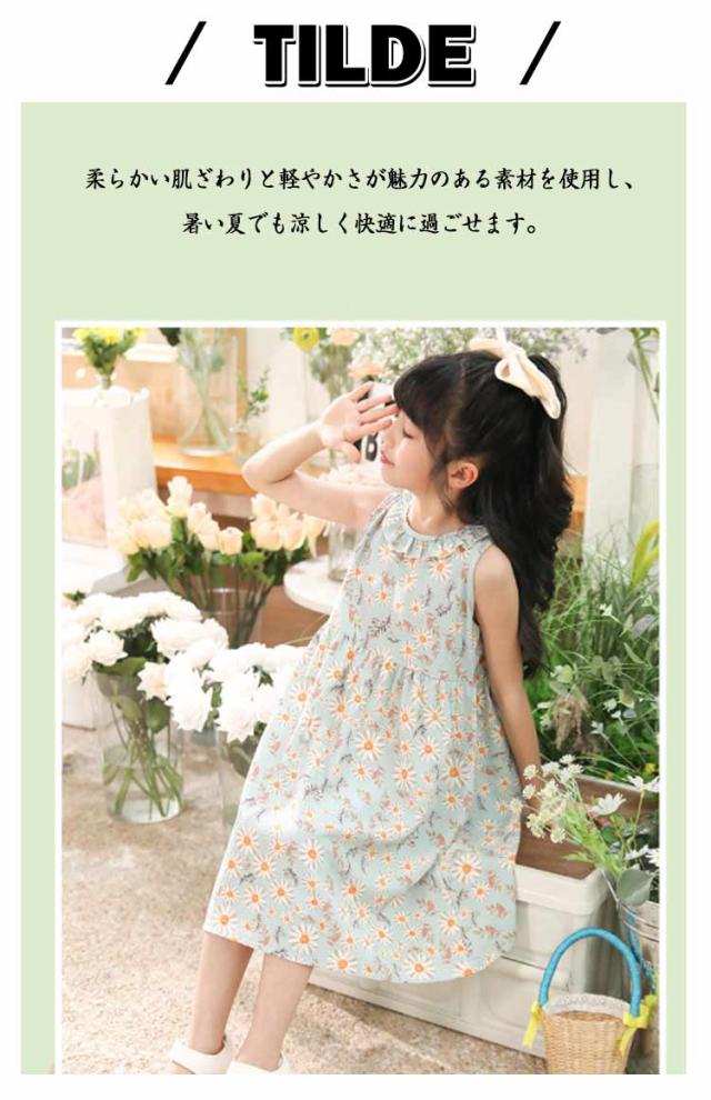 ノースリーブワンピース 女の子 袖なしワンピース 総柄 かわいい 子供服 春夏 子供服 薄手 女児 キッズ 花柄 フラワープリント 可愛い ガーリー 大きいサイズ 夏服 リゾート 旅行 涼しい ギフト プレゼント 送料無料