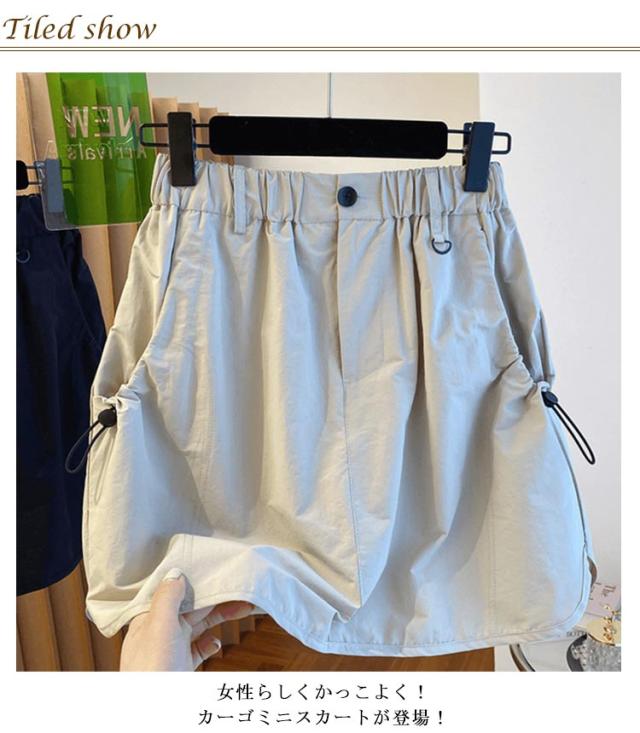 カーゴスカート レディース 夏 薄手 シングル ハイウエスト 着?せ ミニスカート ミリタリー カーゴ スカート 台形 シングル 膝上 ショート丈 ウエストゴム ポケット付き カジュアル 大人可愛い スタイルアップ 韓国風 トレンド 送料無料