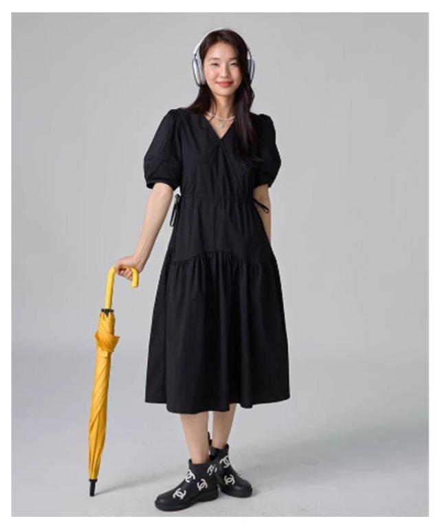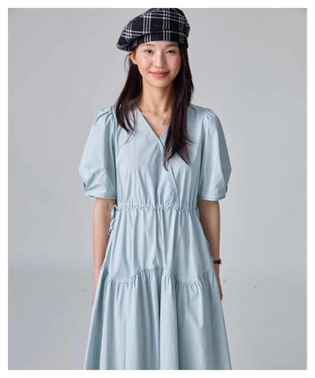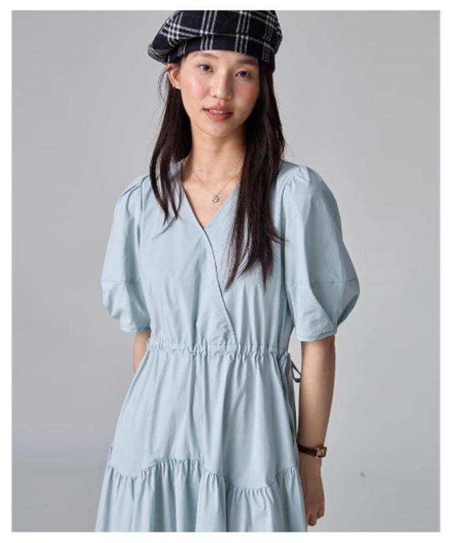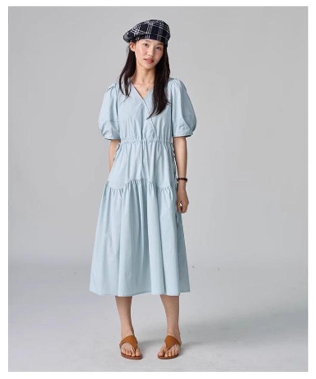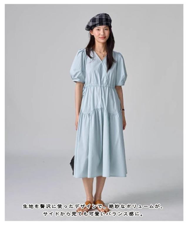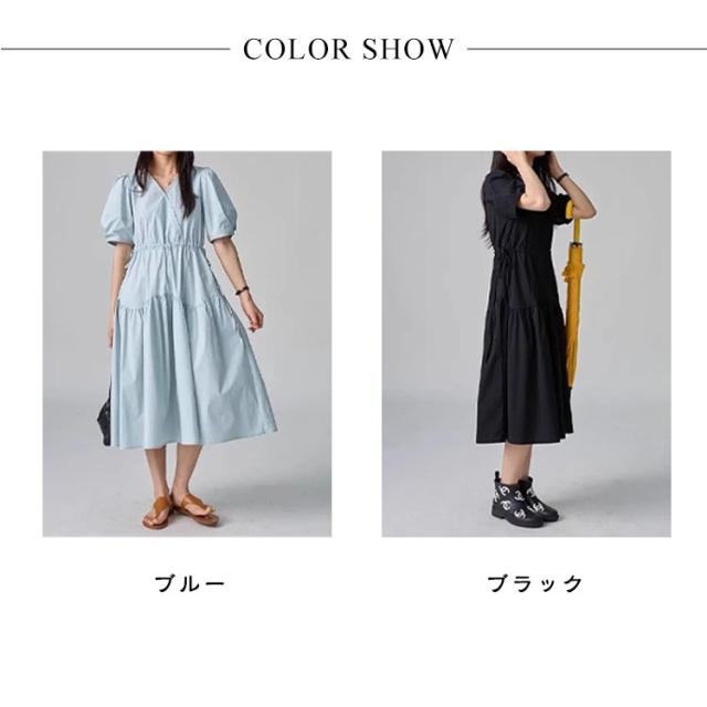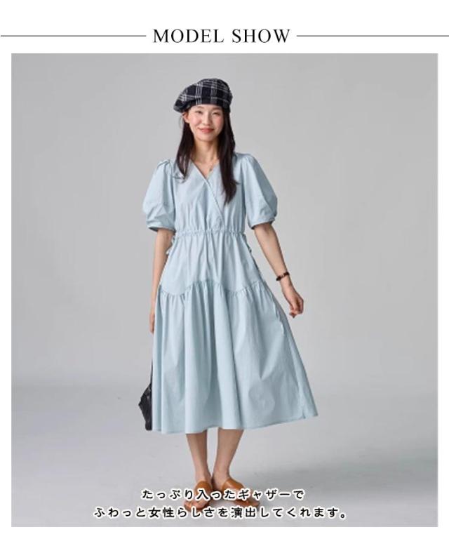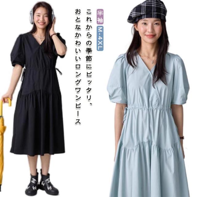 パフスリーブ パフスリーブ ロングワンピース Vネックワンピース 半袖 Vネック ワンピース 半袖ワンピース ワンピ 夏 30代 ワンピース チェック きれいめ 20代 ロング 40代 低身長 マタニティ 妊婦 ロング丈