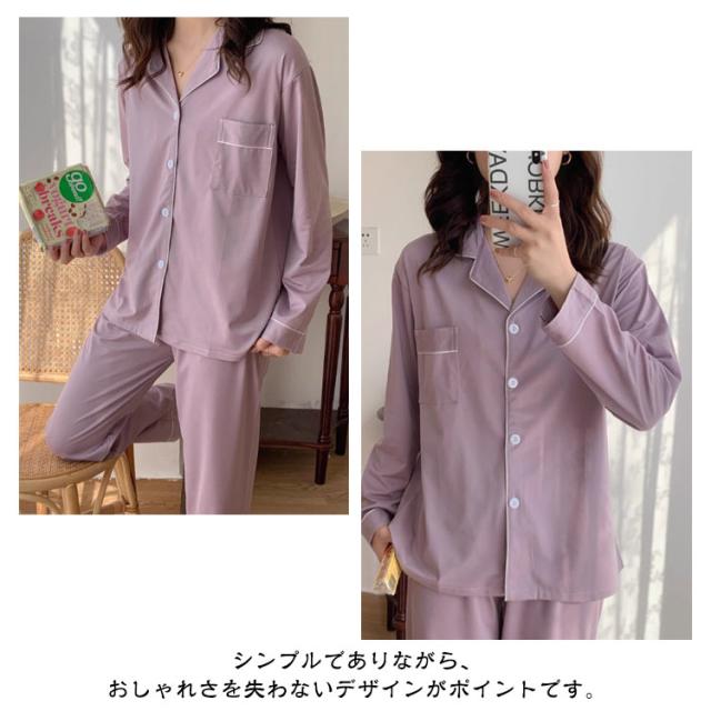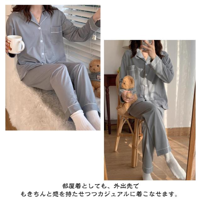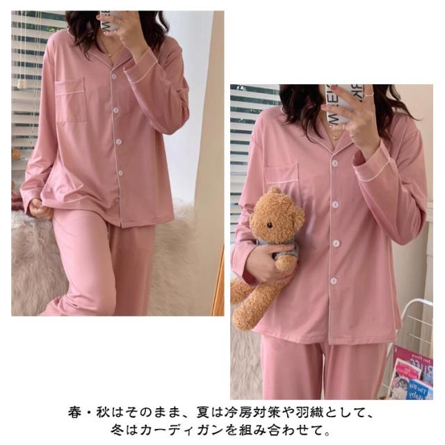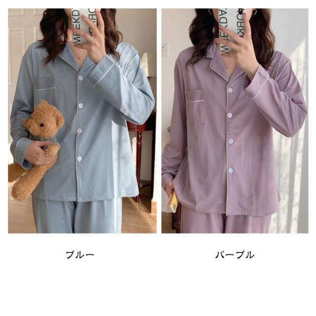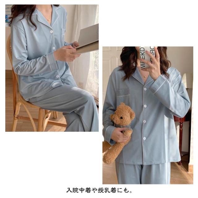 上下セット ルームウェア レディース パジャマ パジャマ 薄手 無地 前開き ふんわり 入院 夏 冬 秋 かわいい 長袖 吸汗速乾 ロングパンツ 寝巻 長袖パジャマ 前開きパジャマ 婦人