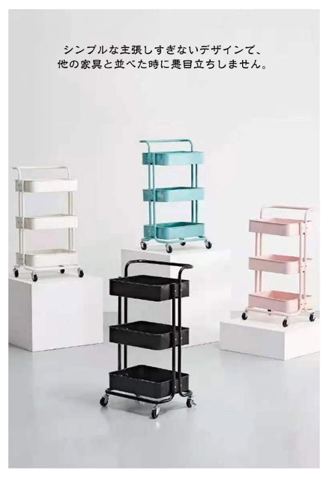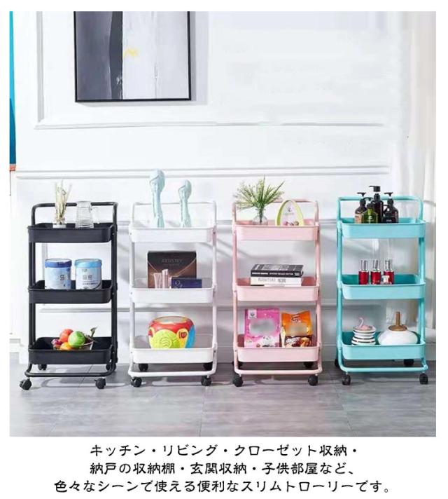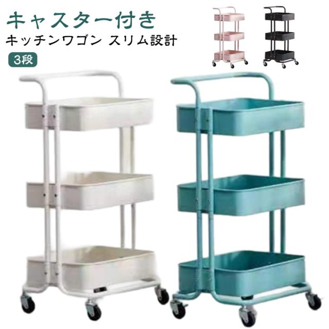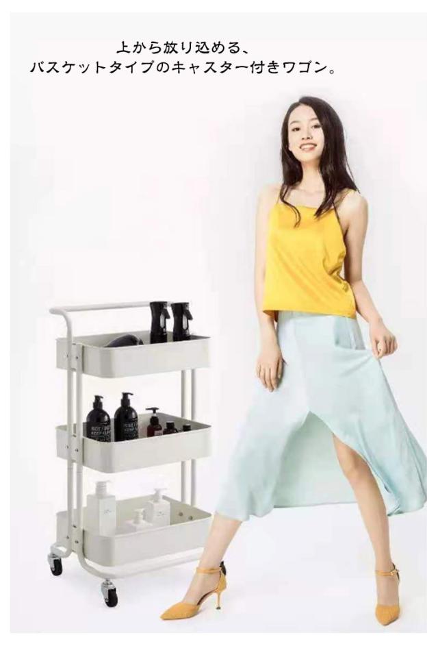 洗面所 スリム ワゴン 小物 キャスター付き キッチン バスケットトローリー ワゴン 収納 高さ81cm 組立簡単 収納カート ワゴン収納 台所 3段 バスケット キャスター 隙間収納 軽量 おしゃれ かわいい