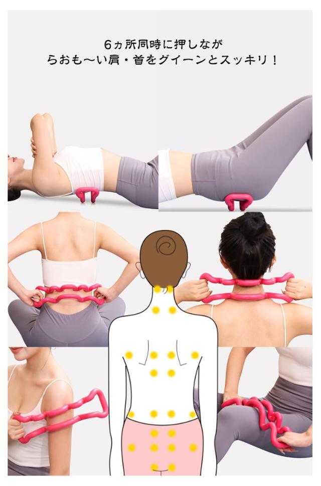 | 長時間座っていることによる腰部や背中の痛み、筋肉のこわばりを解消するために設計されたマッサージツールです。 6ヵ所同時に押しながらおも〜い肩・首をグイーンとスッキリ! 簡単に使用できるデザインで、自宅でリラックスした時間を提供します。 手軽に使えるので、仕事の合間や休憩時間に便利です。 | |