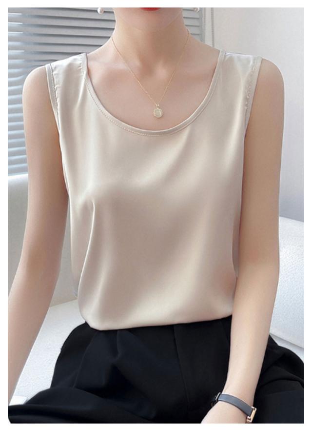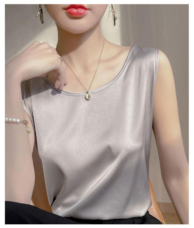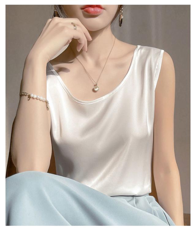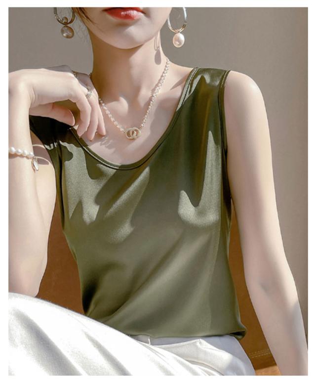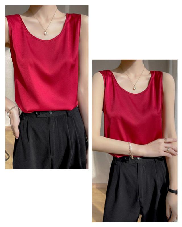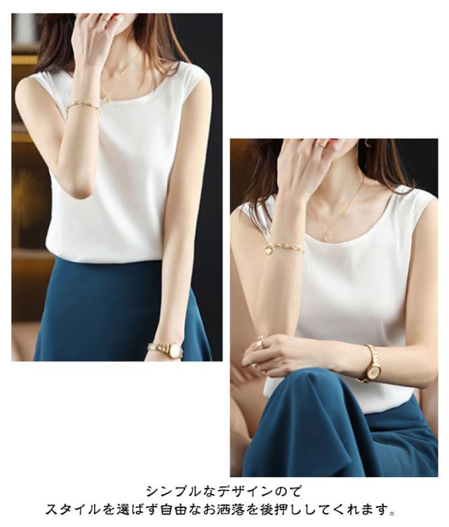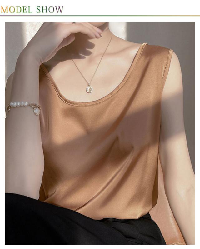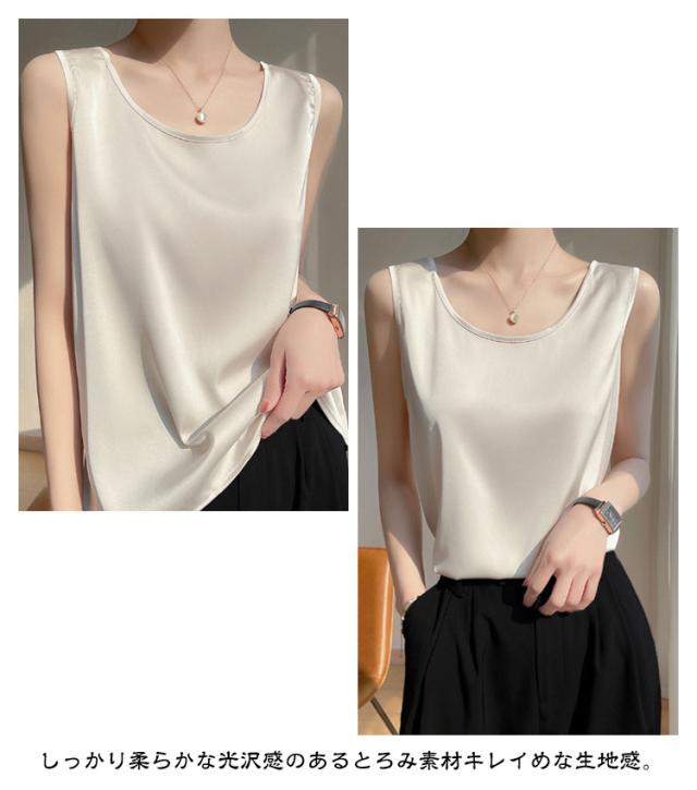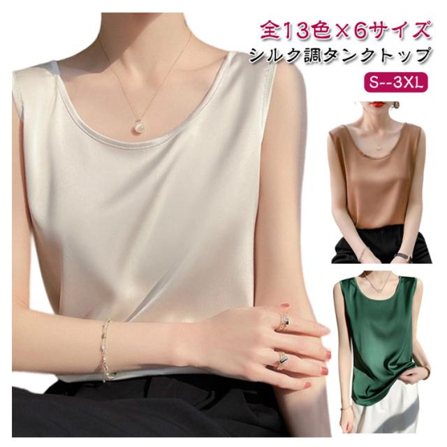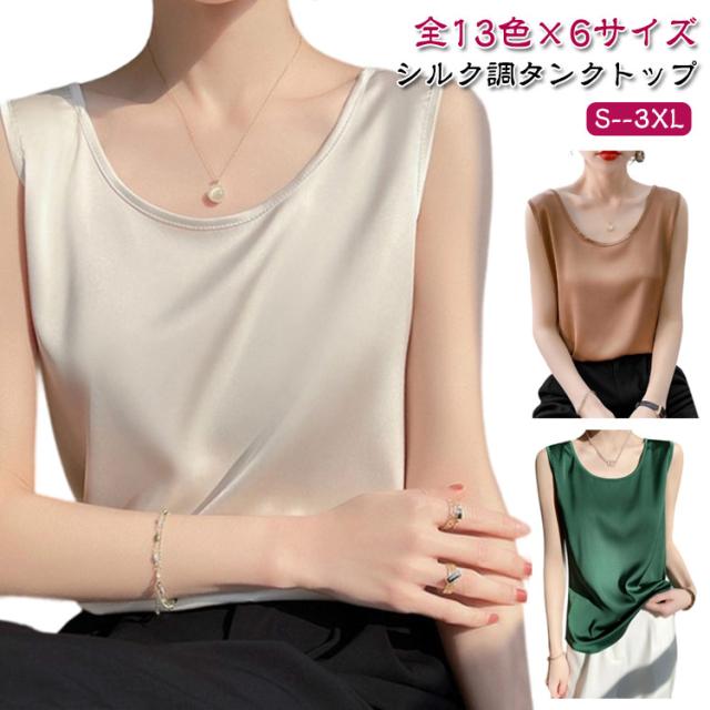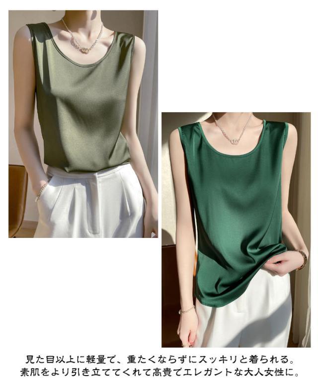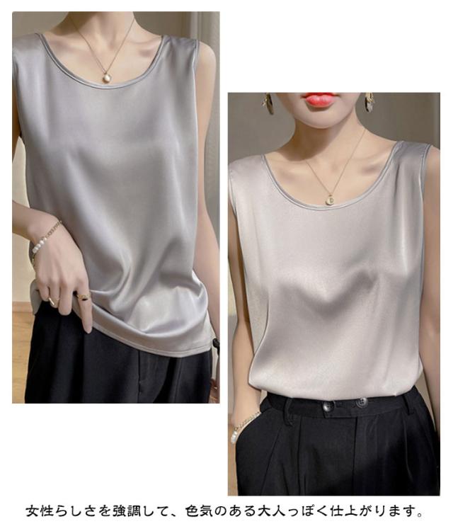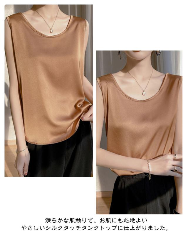 シャツ シルクタッチ タンクトップ レディース 大きいサイズ ノースリーブ トップス インナー シルクサテン Uネック ショート丈 ブラウス タンクトップ 上品 重ね着 肌着 光沢感 ツルツル 敏感肌 保温 吸湿 速乾