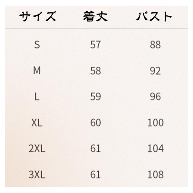| サイズ | S M L XL 2XL 3XL |