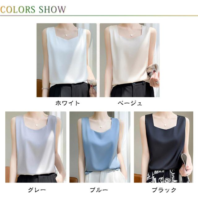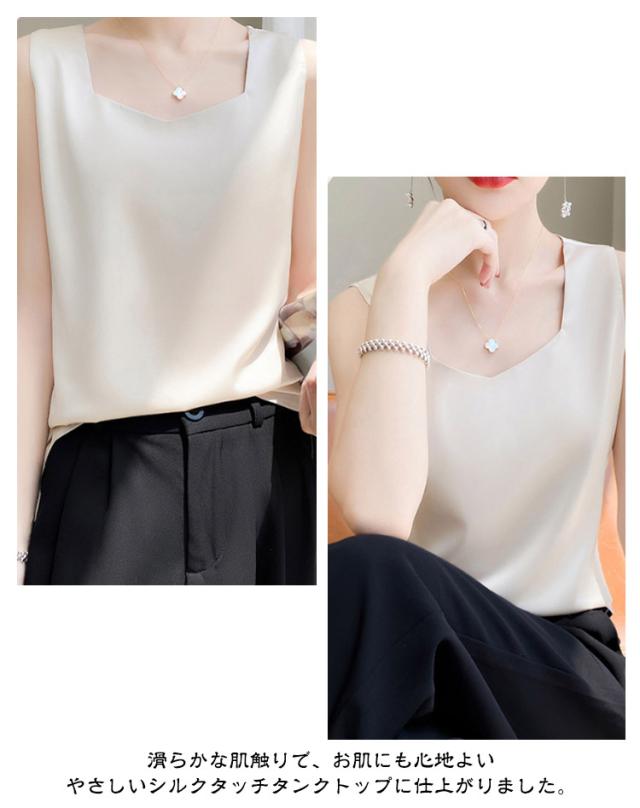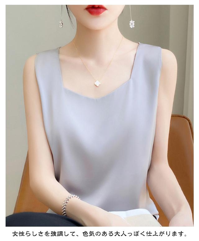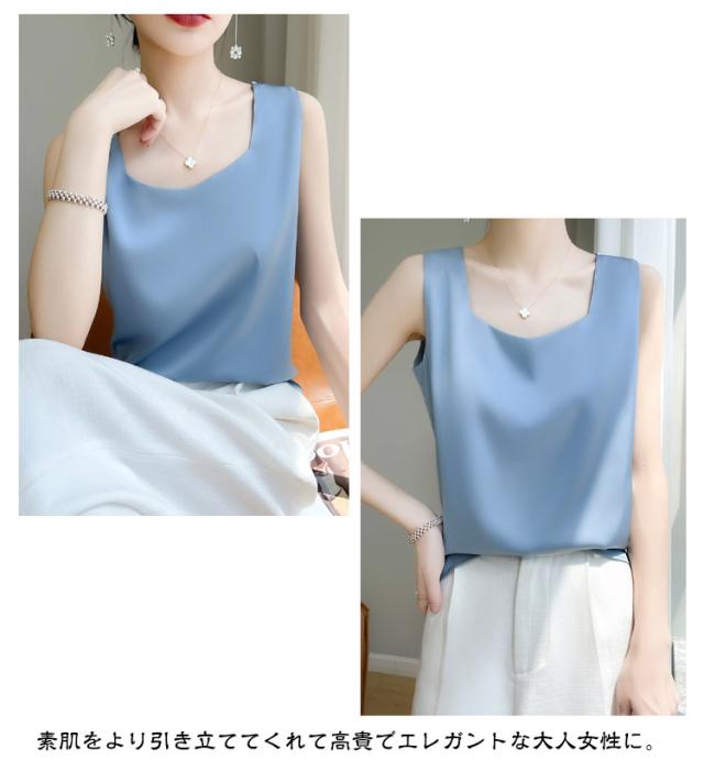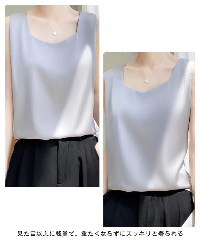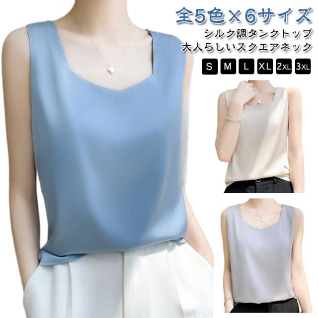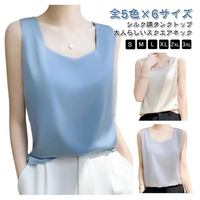 大きいサイズ タンクトップ ノースリーブ レディース 光沢感 スクエアネック シルクサテン シャツ インナー ブラウス ショート丈 吸湿 ルームウェア 上品 重ね着 肌着 トップス ツルツル 敏感肌 保温 タンクトップ 速乾
