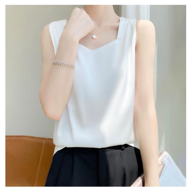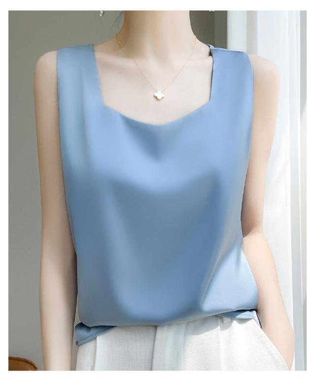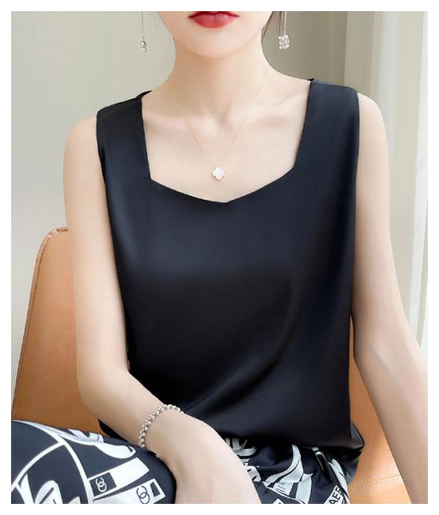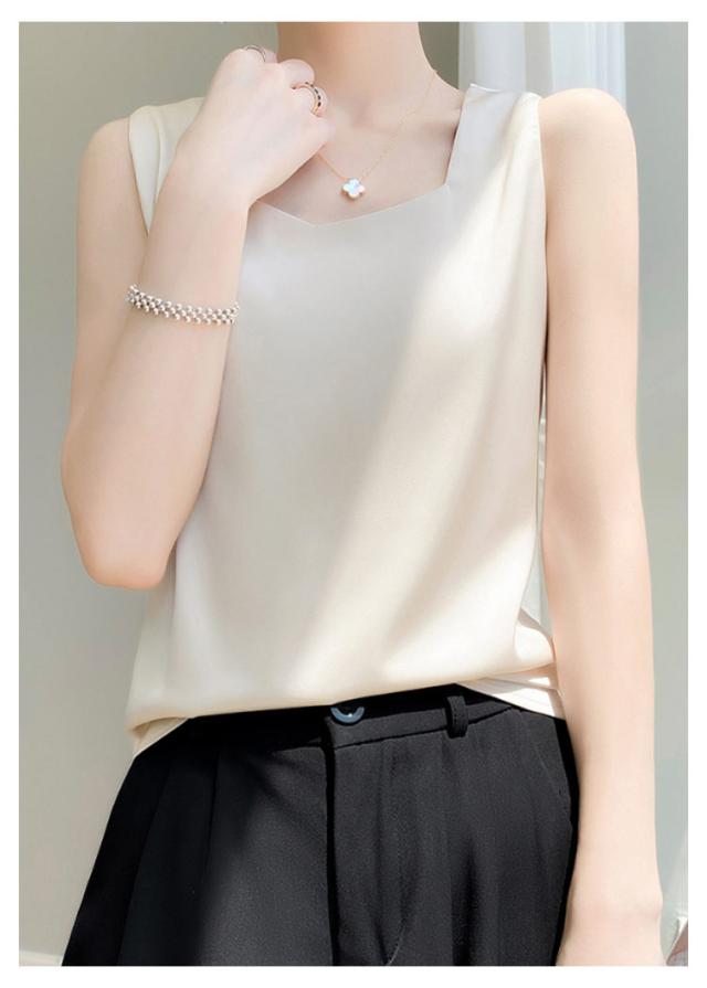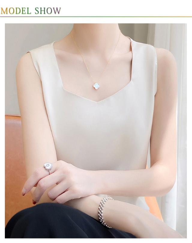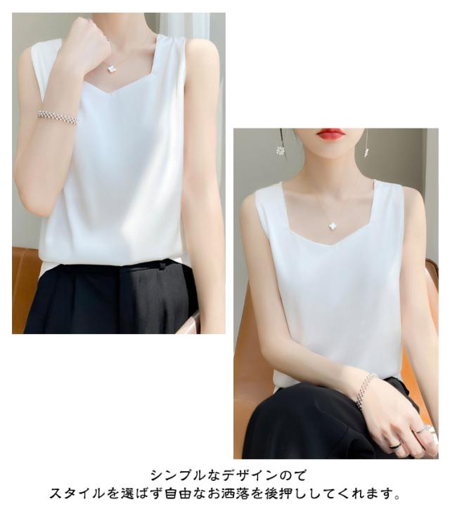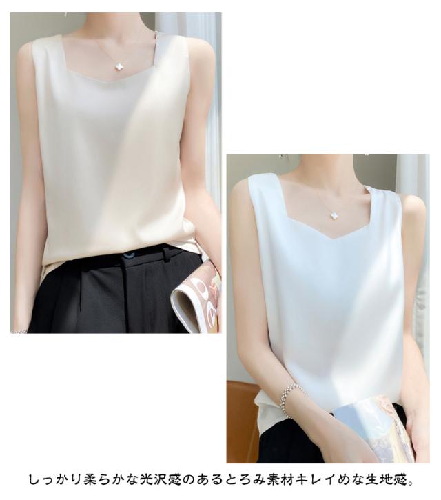 大きいサイズ タンクトップ ノースリーブ レディース 光沢感 スクエアネック シルクサテン シャツ インナー ブラウス ショート丈 吸湿 ルームウェア 上品 重ね着 肌着 トップス ツルツル 敏感肌 保温 タンクトップ 速乾