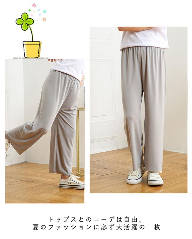 | これからの季節に大活躍する薄手ロングパンツ 通気性が良くて汗もよく吸収してくれます。夏のコーデにピッタリです。 ウエストゴムデザインだから、お腹周りにキレイにフィットして、楽ちんなのに動きやすさも◎ トップスとのコーデは自由、夏のファッションに必ず大活躍の一枚。 普段着だけでなく部屋着としても◎ | |