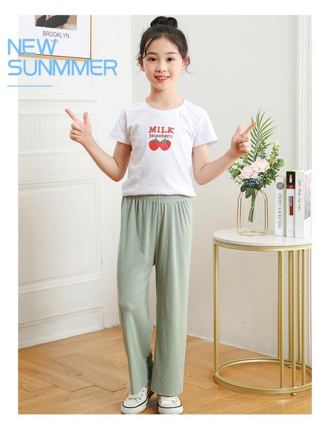 男の子 長ズボン 2枚セット ロングパンツ 女の子 ストレートパンツ 長ズボン キッズ 涼しい 薄手 ふんわり 夏服 紫外線対策 冷房対策 女の子 大きいサイズ 子供 ボトムス 子供服 ゆったり ウエストゴム 柔らかい 無地 通気性 可愛い