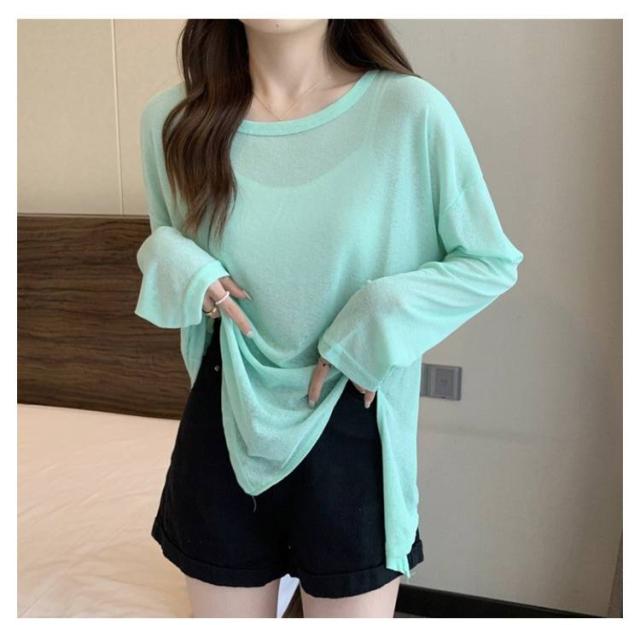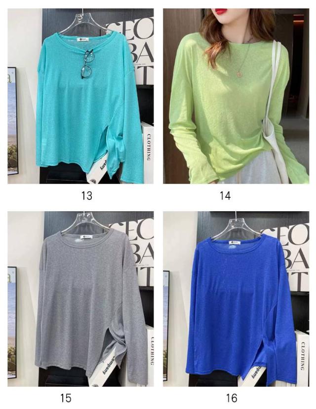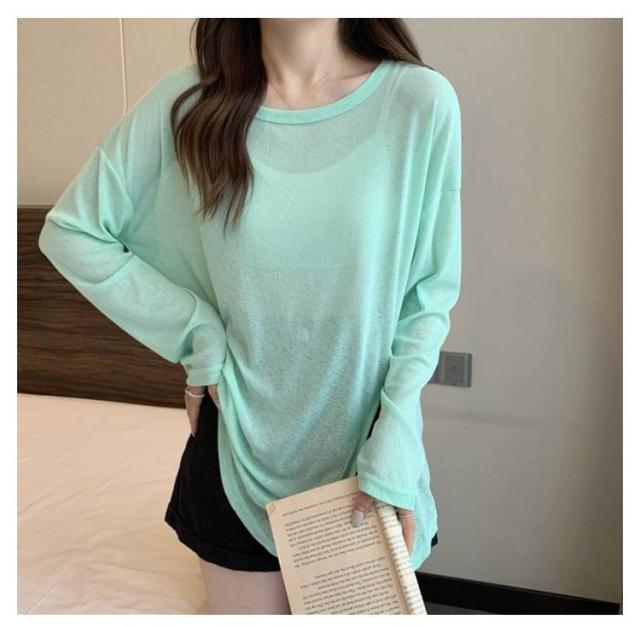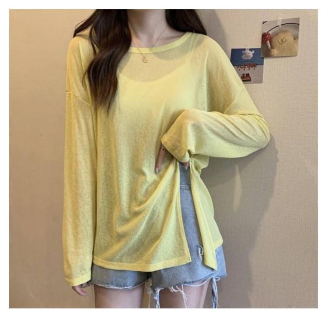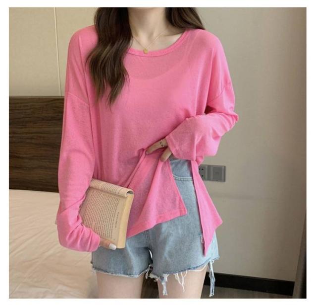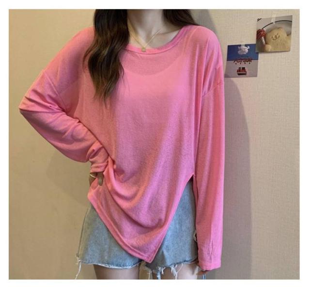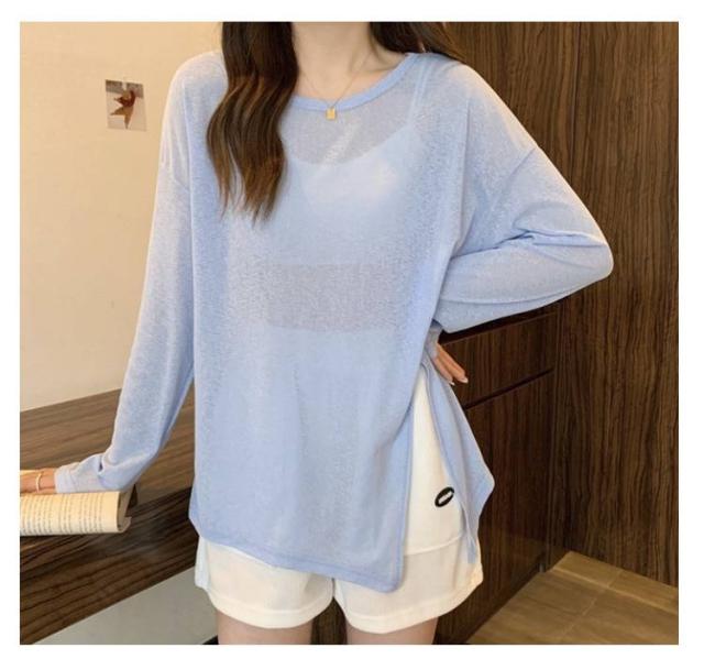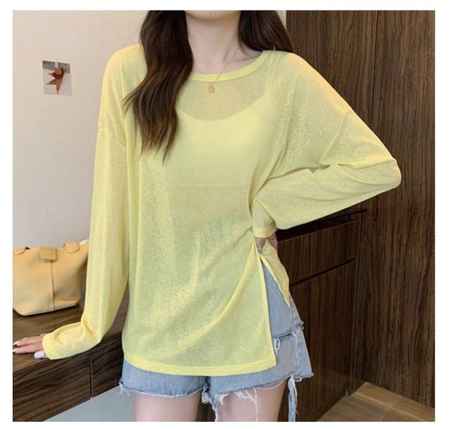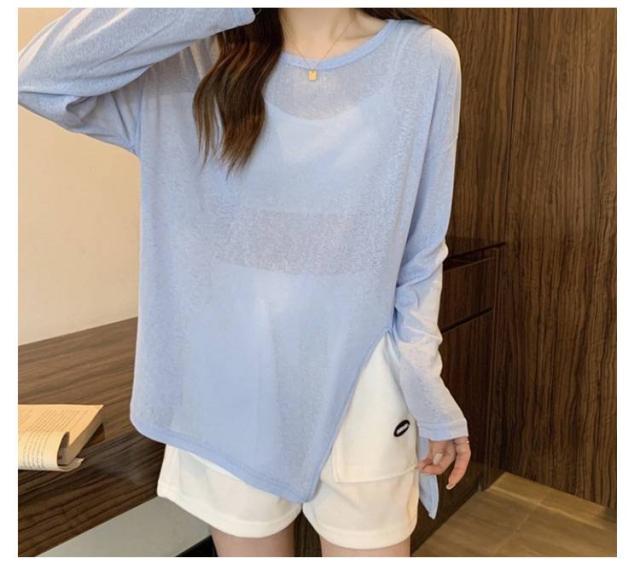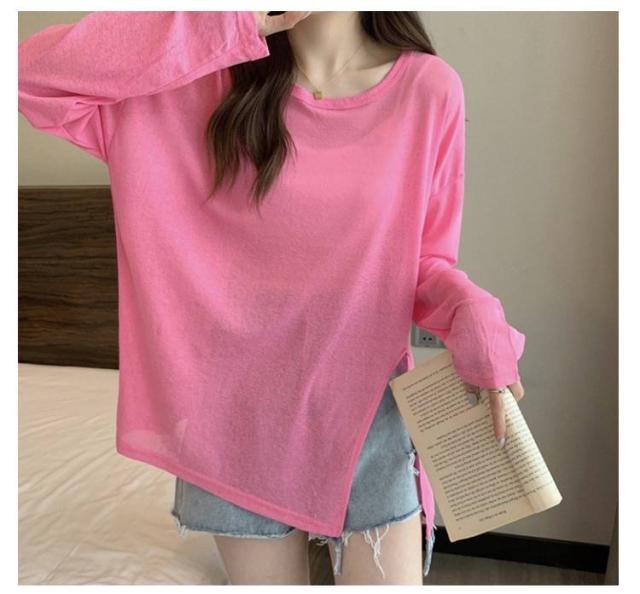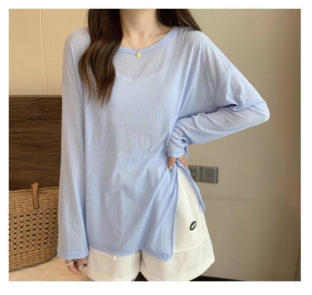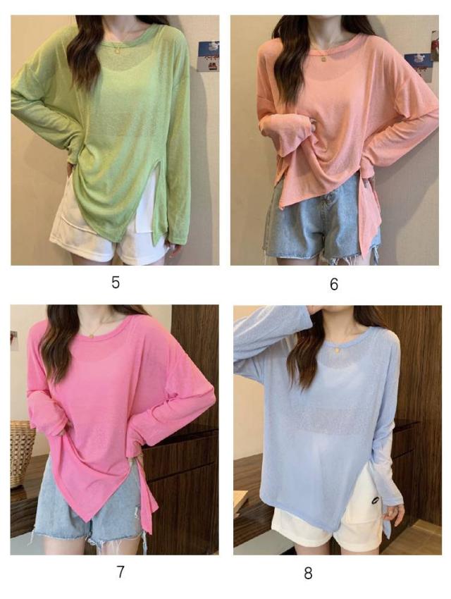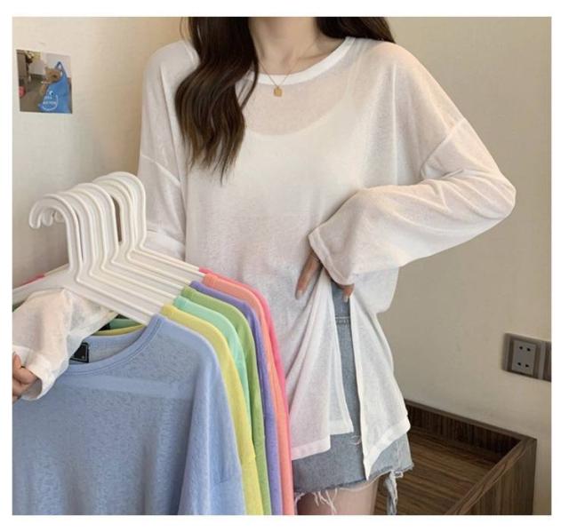 レディース 冷感 接触冷感 UVカットTシャツ 長袖tシャツ クール スリット シアートップス カットソー トップス 薄手 夏 春 クルーネック インナー uv 涼感 日よけ 無地カットソー 紫外線対策 重ね着 涼しい 大きサイズ 全15色