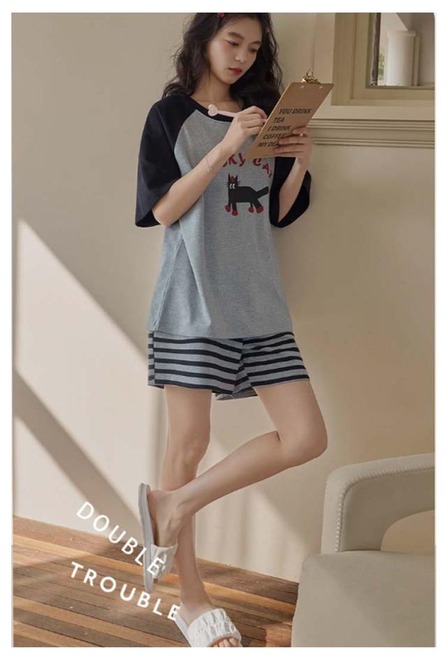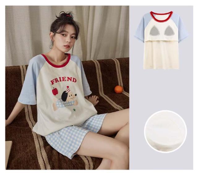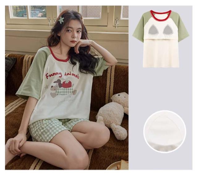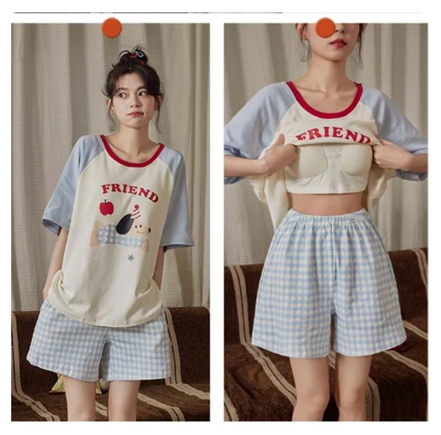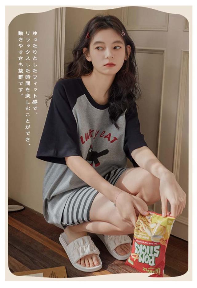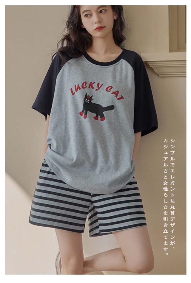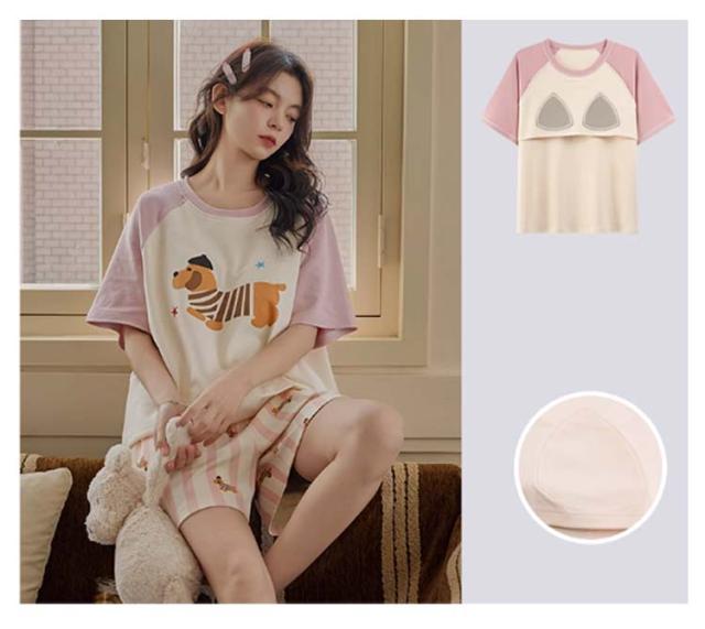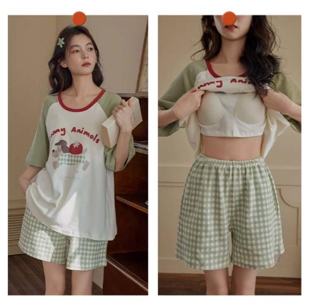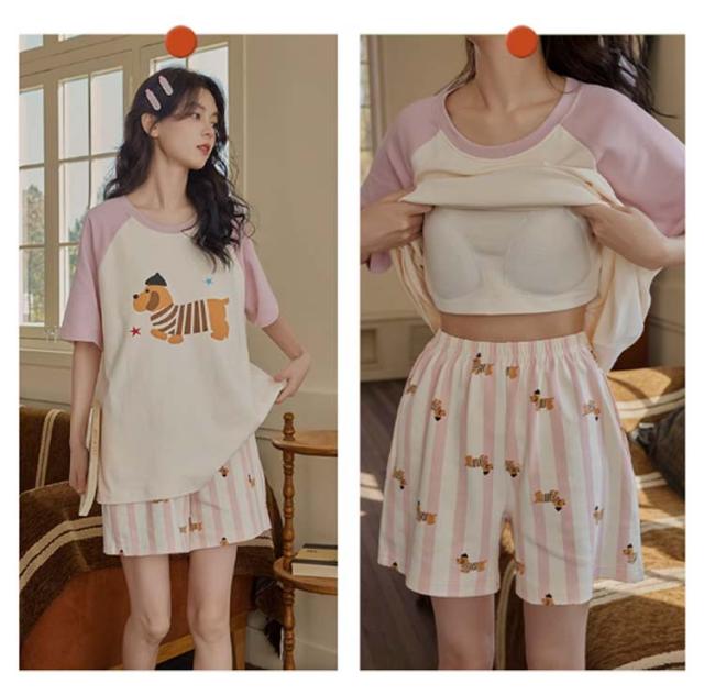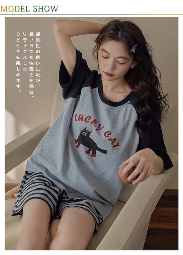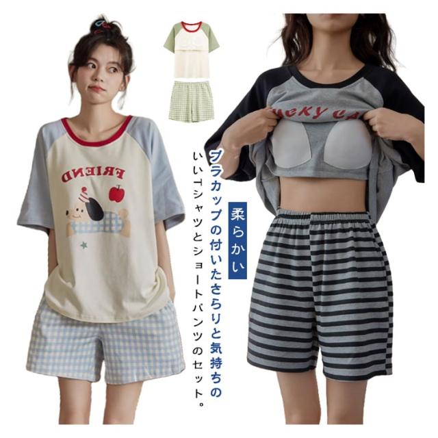 半袖トップス 半袖Tシャツ 上下セット カップ付き レディース レディース 綿 ルームウェア パジャマ 柔らかい 夏 ハーフパンツ ナイトウェア ナイトウェア 部屋着 ゆったり